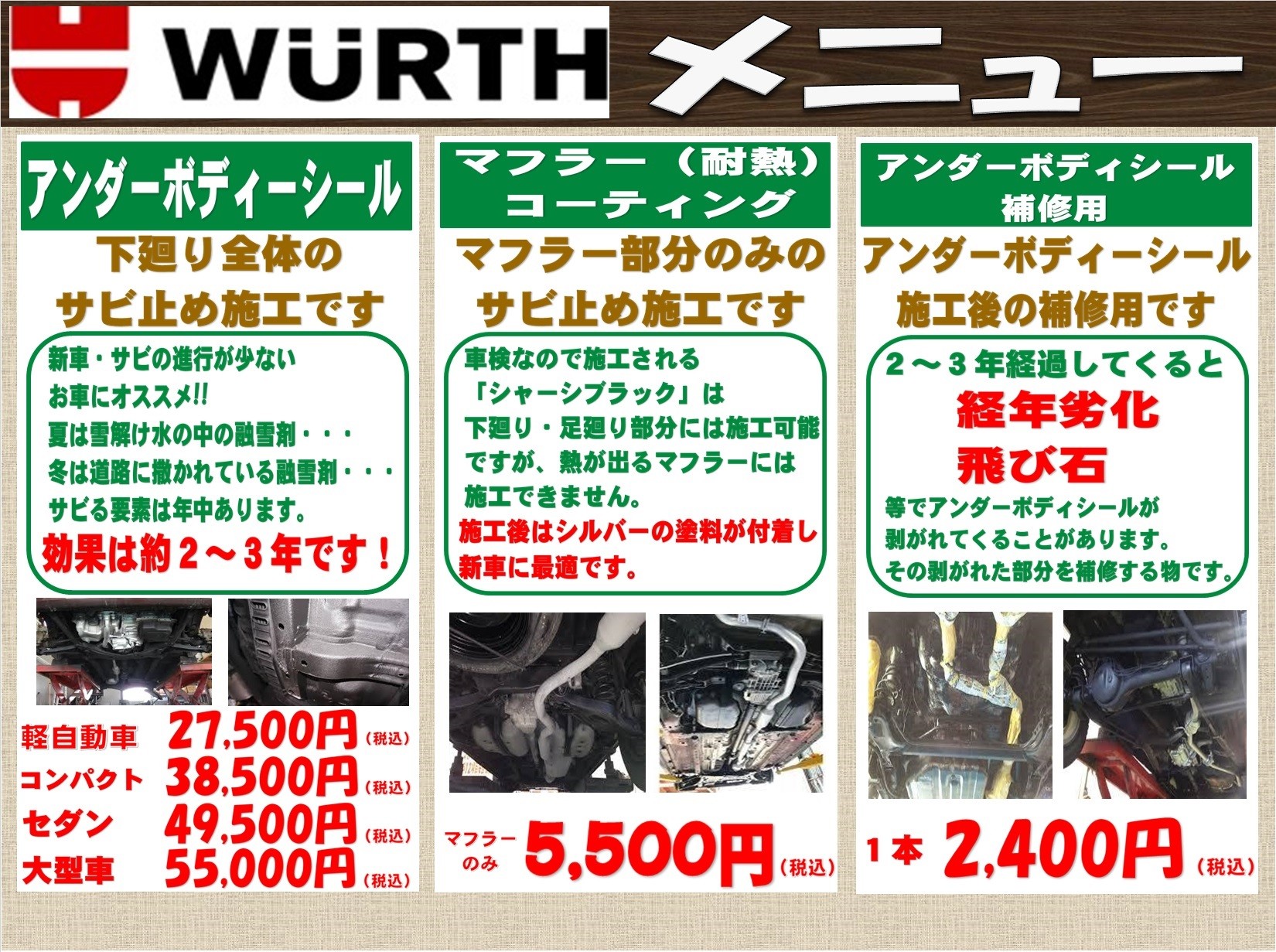 サビでマフラーがダメになる前に、一度施工してみていかがですか?