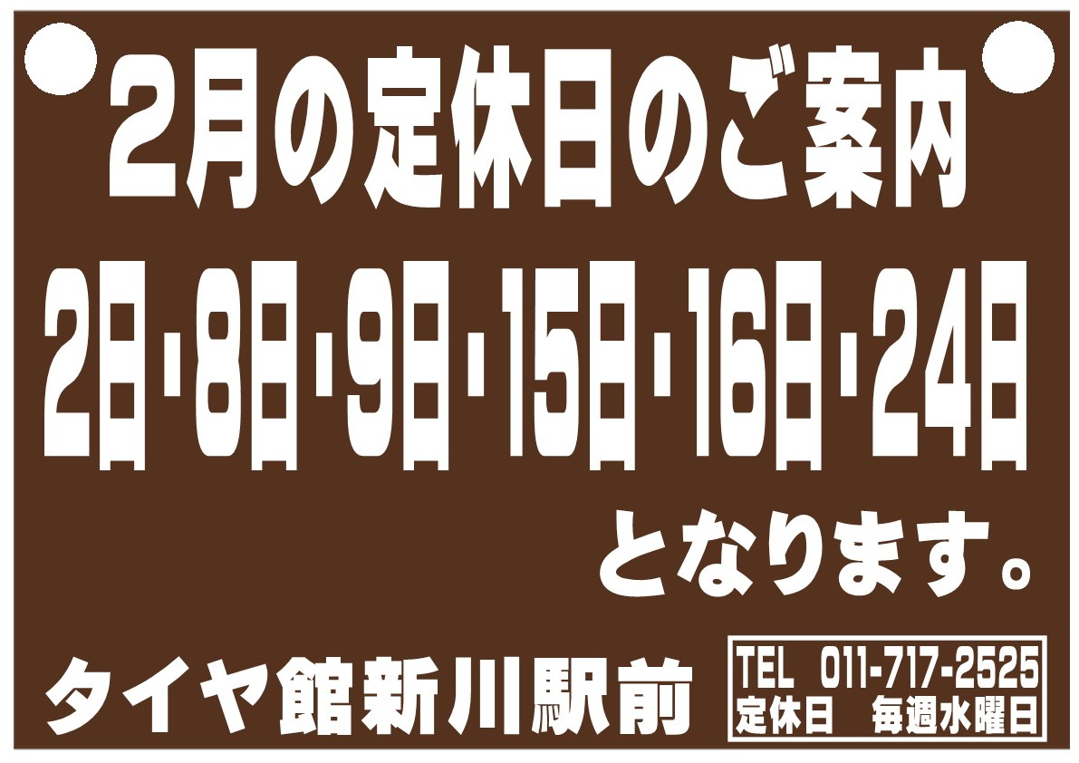 定休日案内 ポスト 2022年2月7日 こんにちは! いつもブログをご覧いただきありがとうございます。 タイトルにもありますが、 明日8日と9日の2日間定休日となります。 来週の15日、16日も2日間続けて定休日となりますので お間違え無いようお願いいたします。 木曜日よりまたのご来店お待ちしております。 担当:佐々木