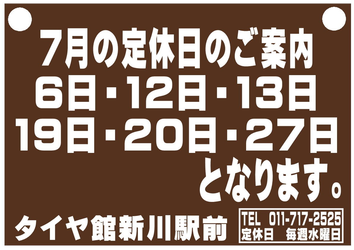 ☆7月定休日☆ ポスト 2022年6月28日 こんにちは(^^)/ 7月の定休日のご案内です♪ 第2・第3火曜日が休みになっていますので お間違えのないようお願いいたしますm(_ _)m 来月も皆様のご来店お待ちしております♪