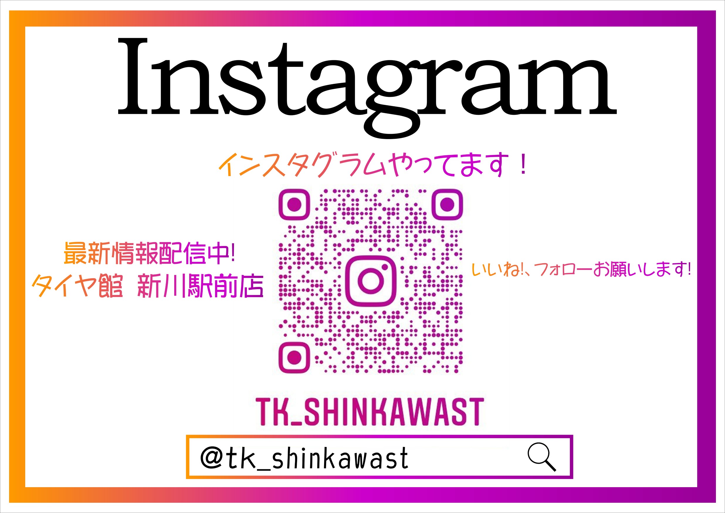 タイヤ館新川駅前 インスタやってます♪