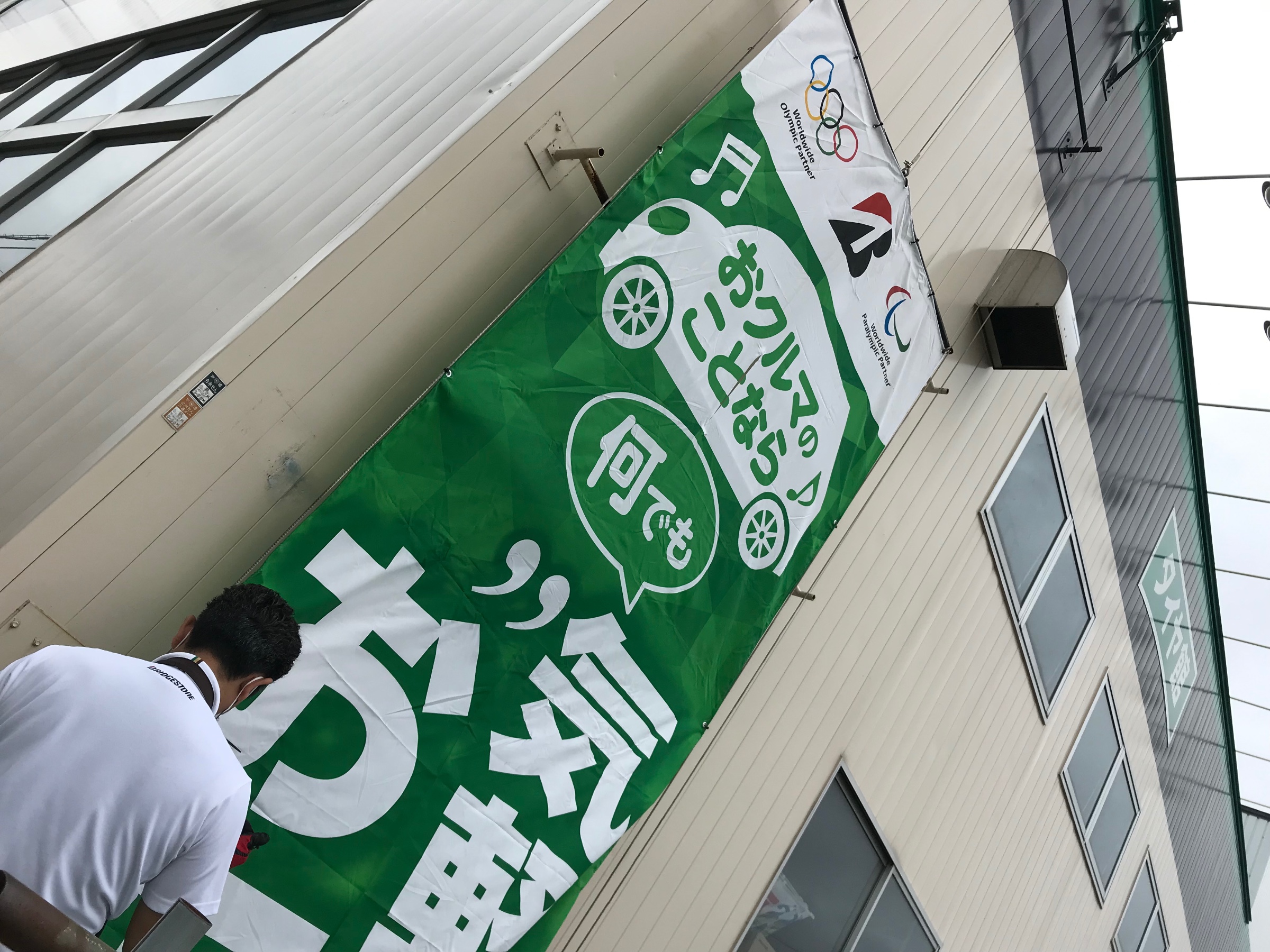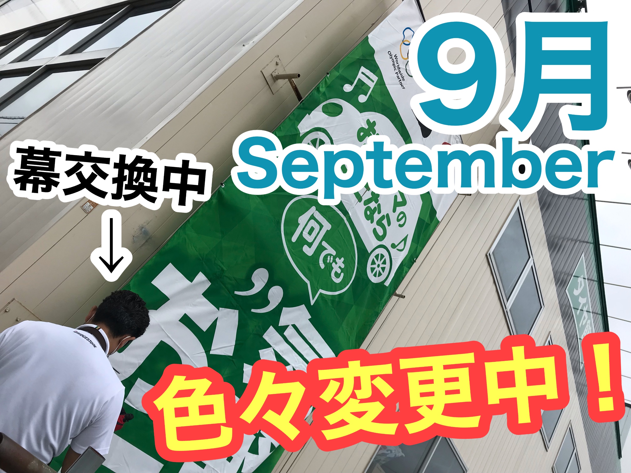 吉田スタッフが新しい幕に交換を実施中です!