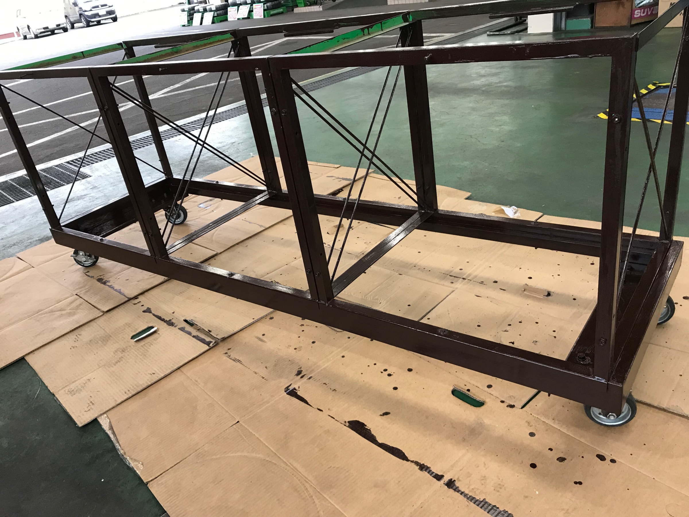 緑でしたがタイヤ館のカラーの茶色に塗り直し中です!
