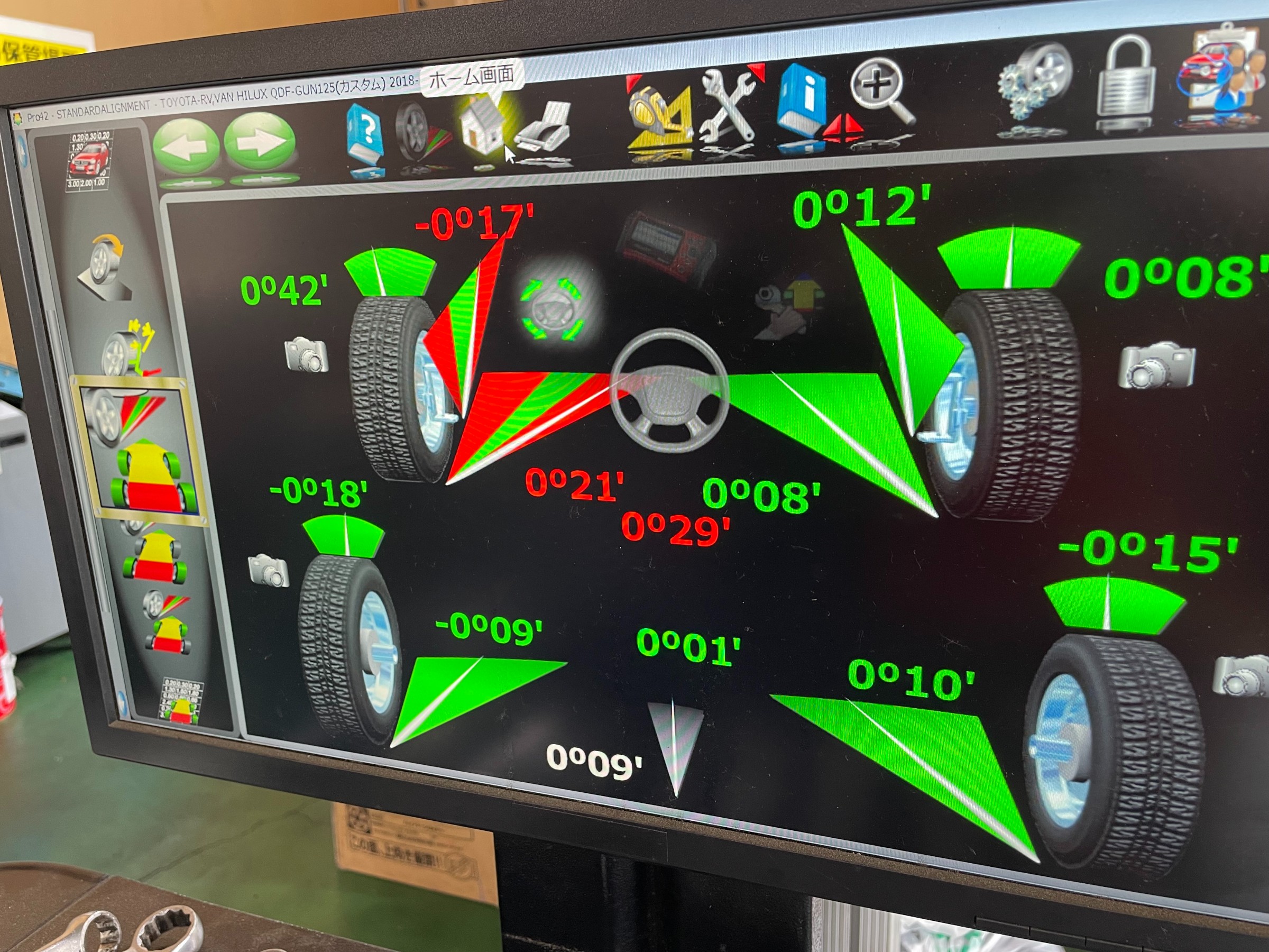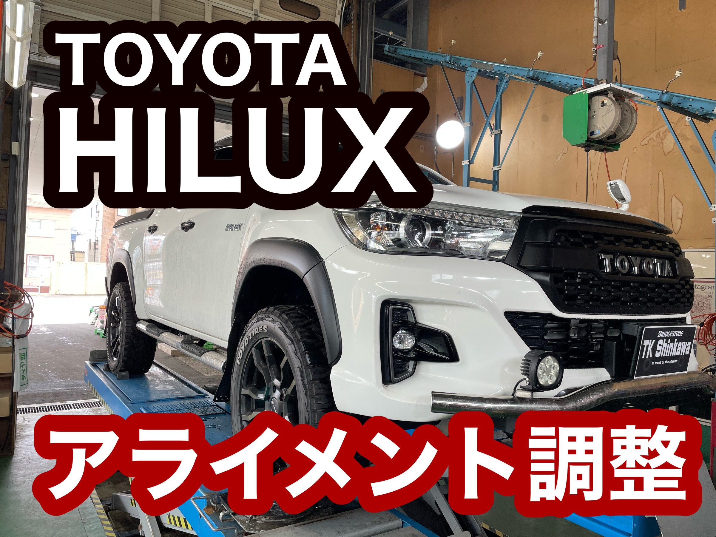 本日は、TYOTA HILUX のアライメント調整を実施しました。