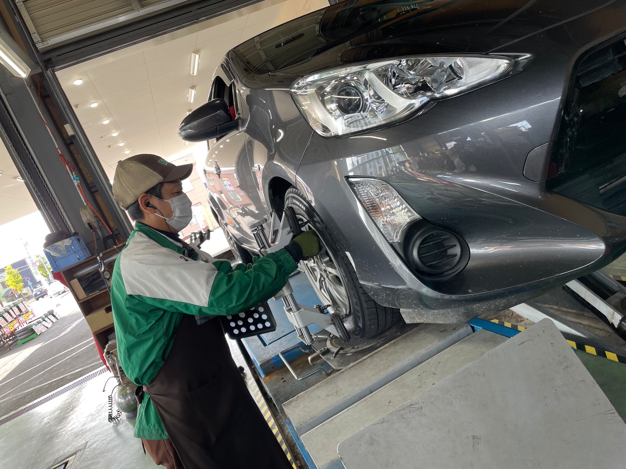 アクアはタイヤ取り付け後アライメントを実施させて頂きました☆