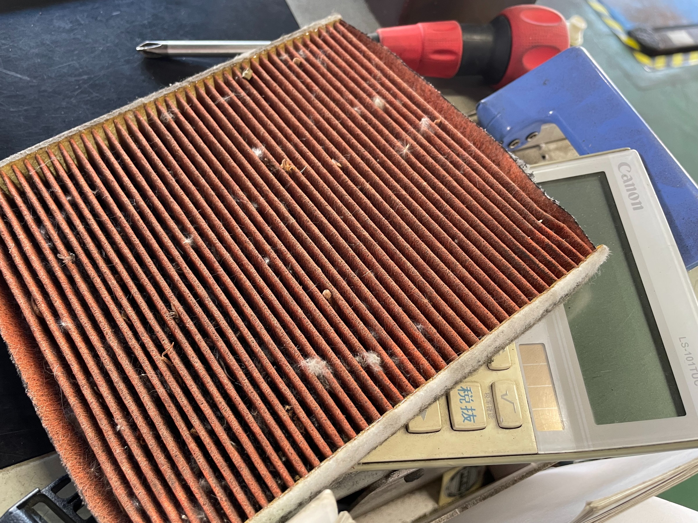 お次に、エアコンフィルターの交換です