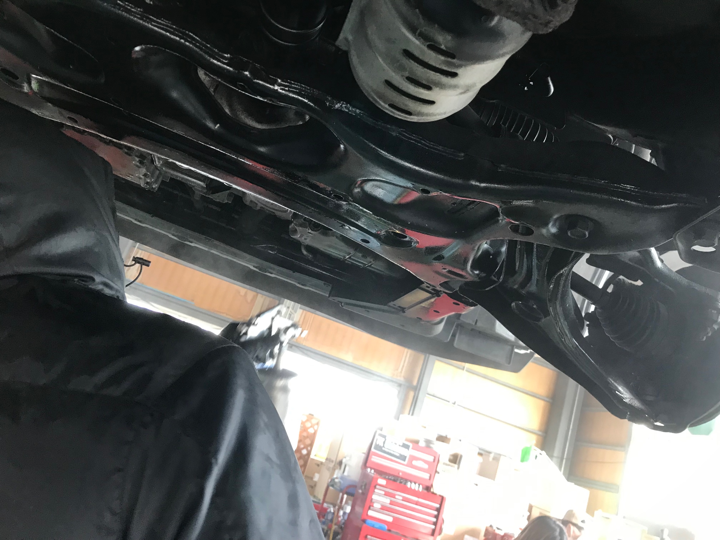 本日は佐々木スタッフ下廻りの錆止めを実施中☆
