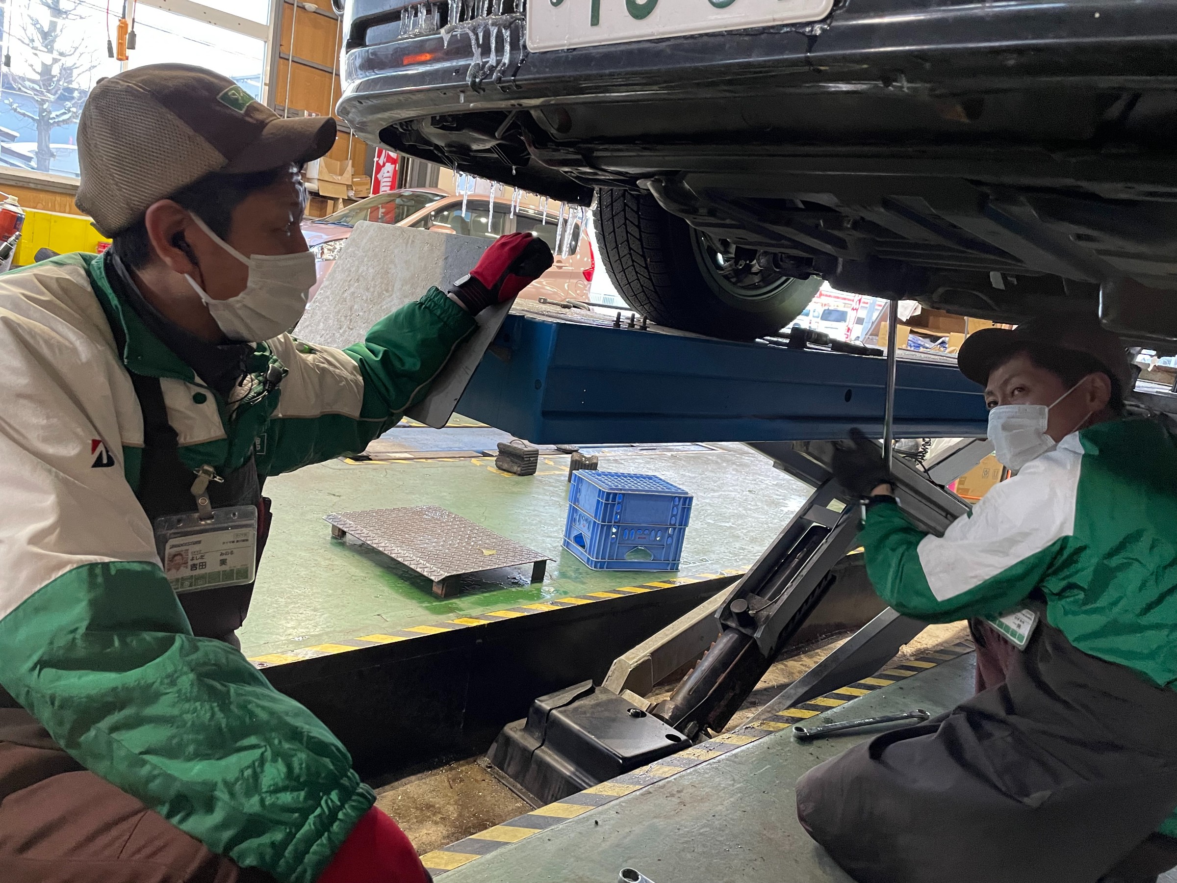 吉田スタッフと原スタッフが相談しながらベストな角度に調整しました。