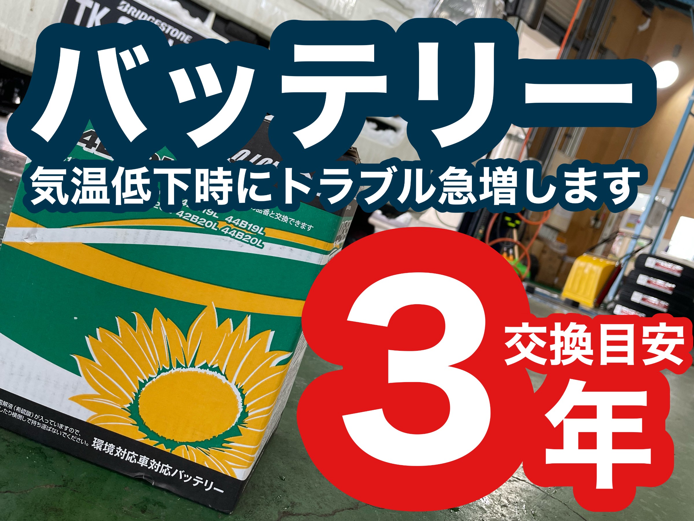 気温低下とともに、お車のバッテリートラブル急増しています。