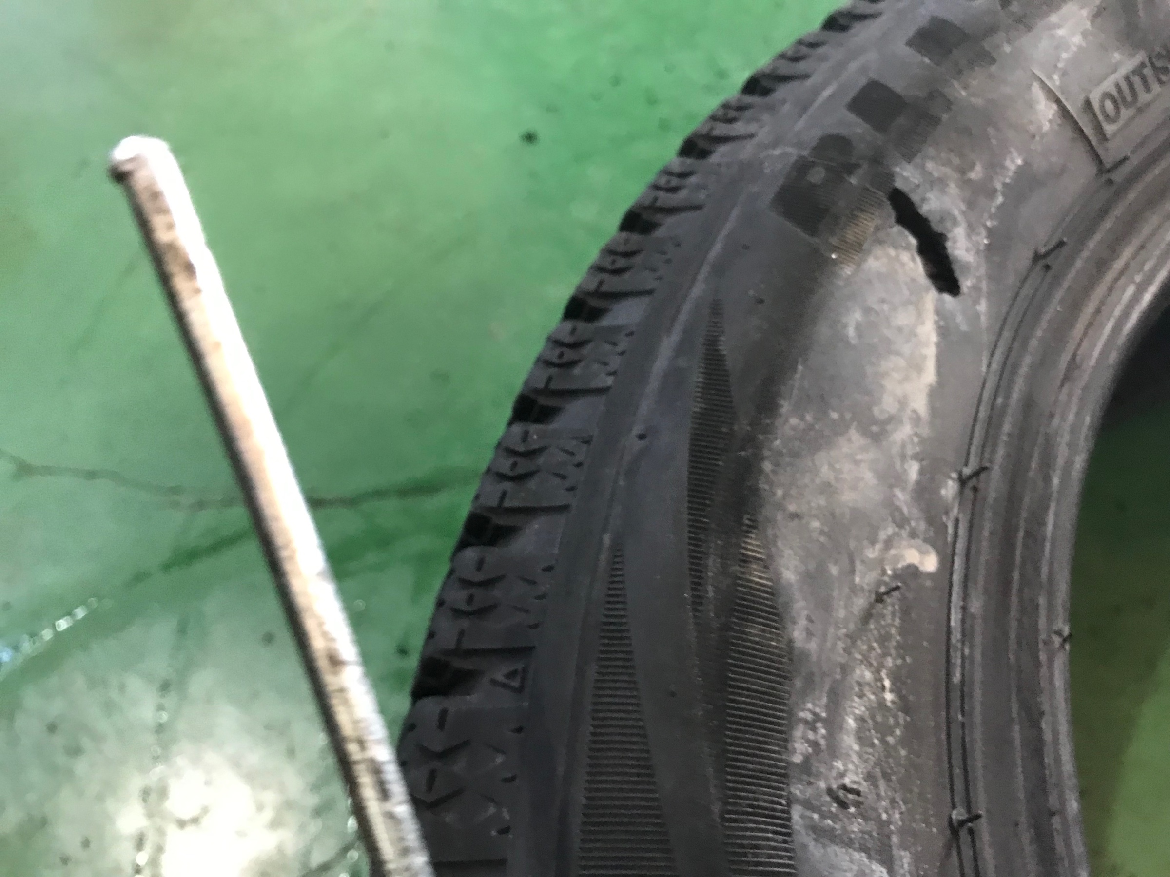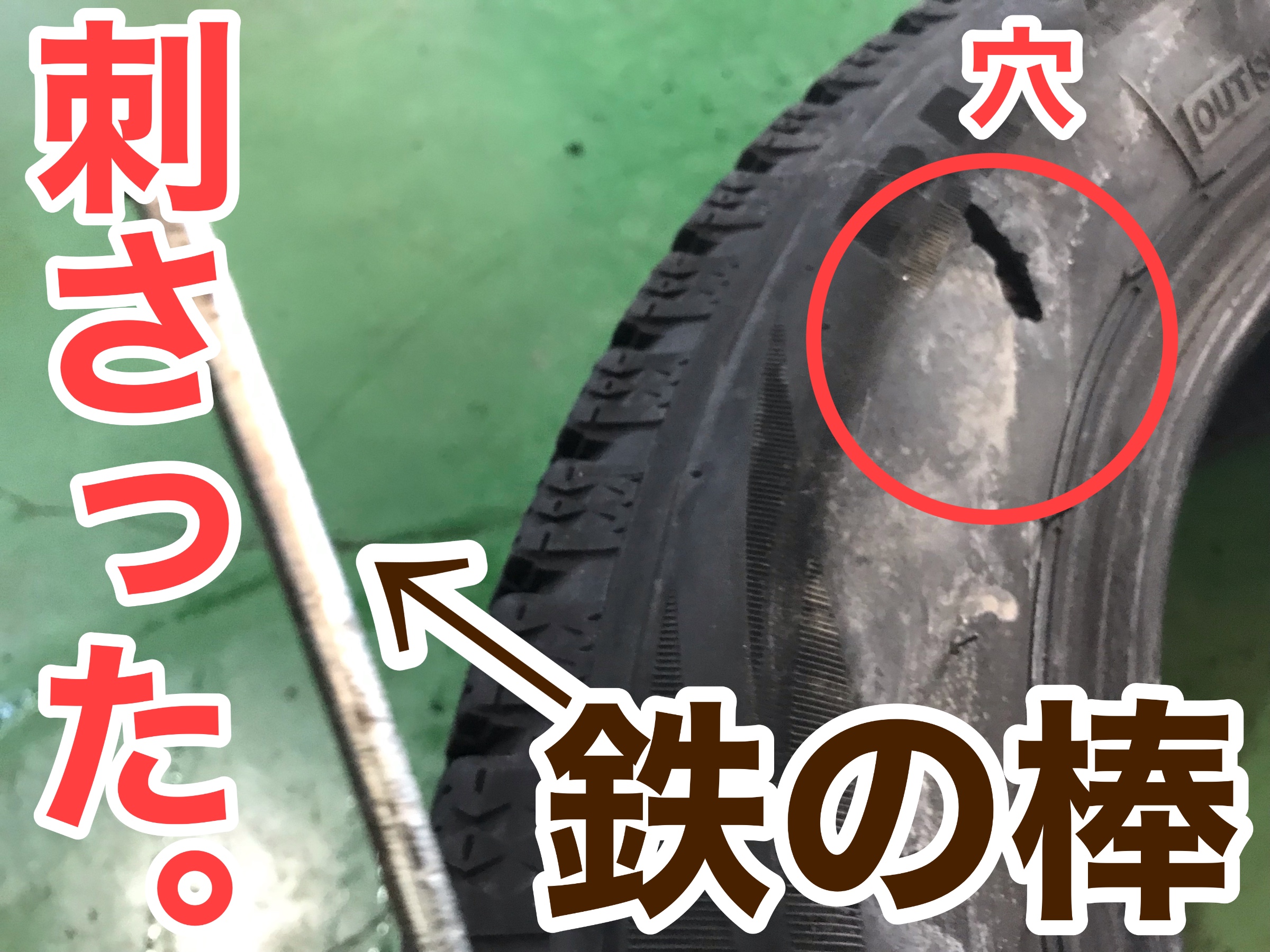 そのまま走行されたようで、タイヤの横が穴が開いてしまっています。。。