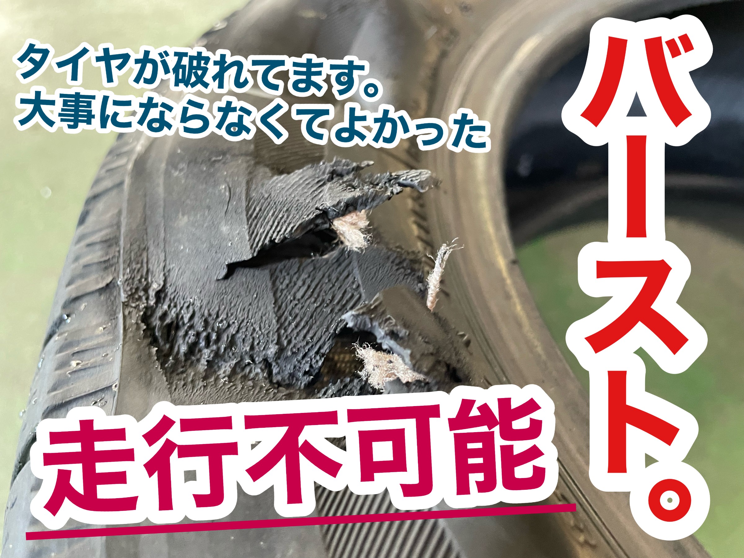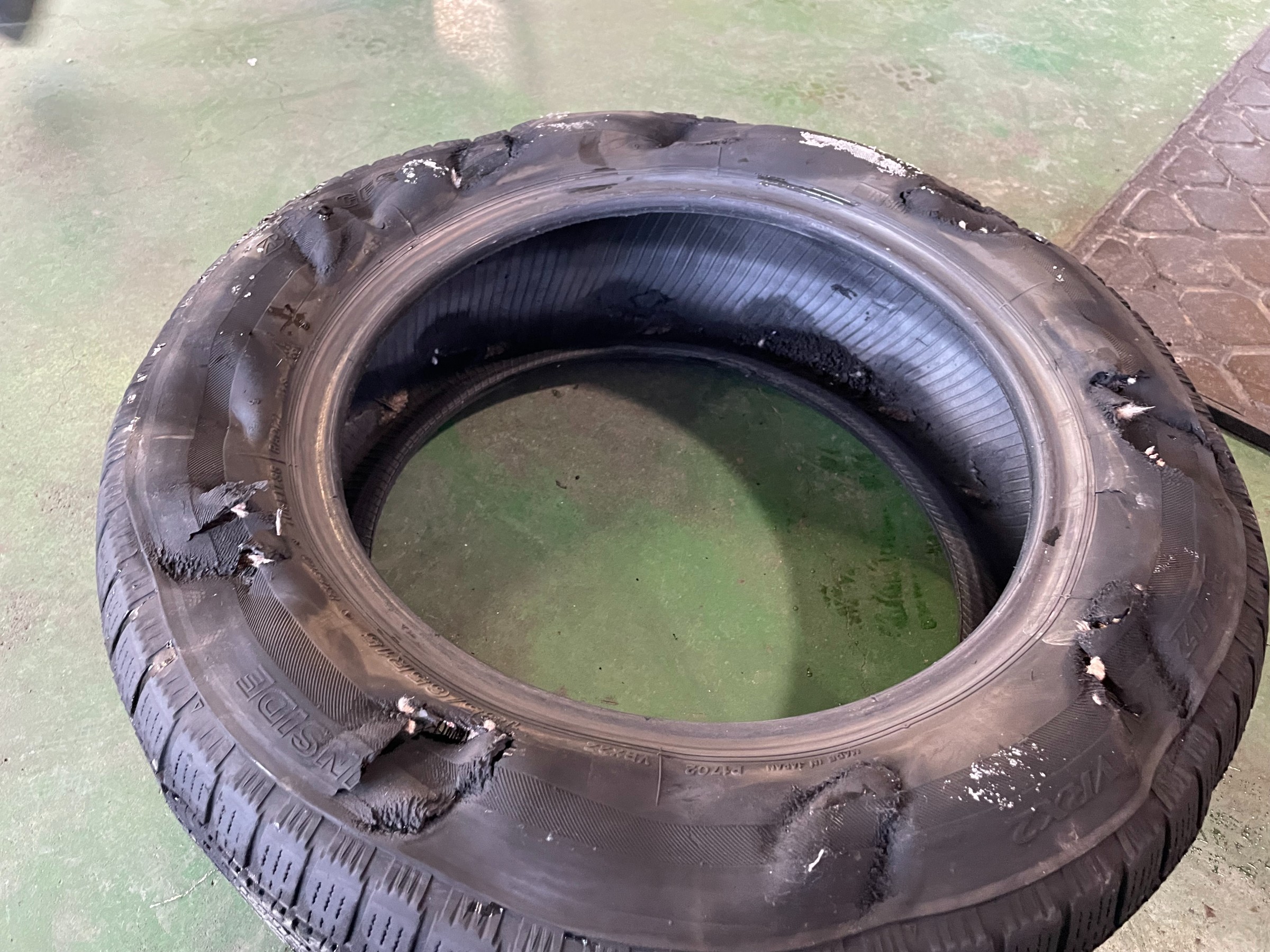 タイヤのあちこちが破れていました。