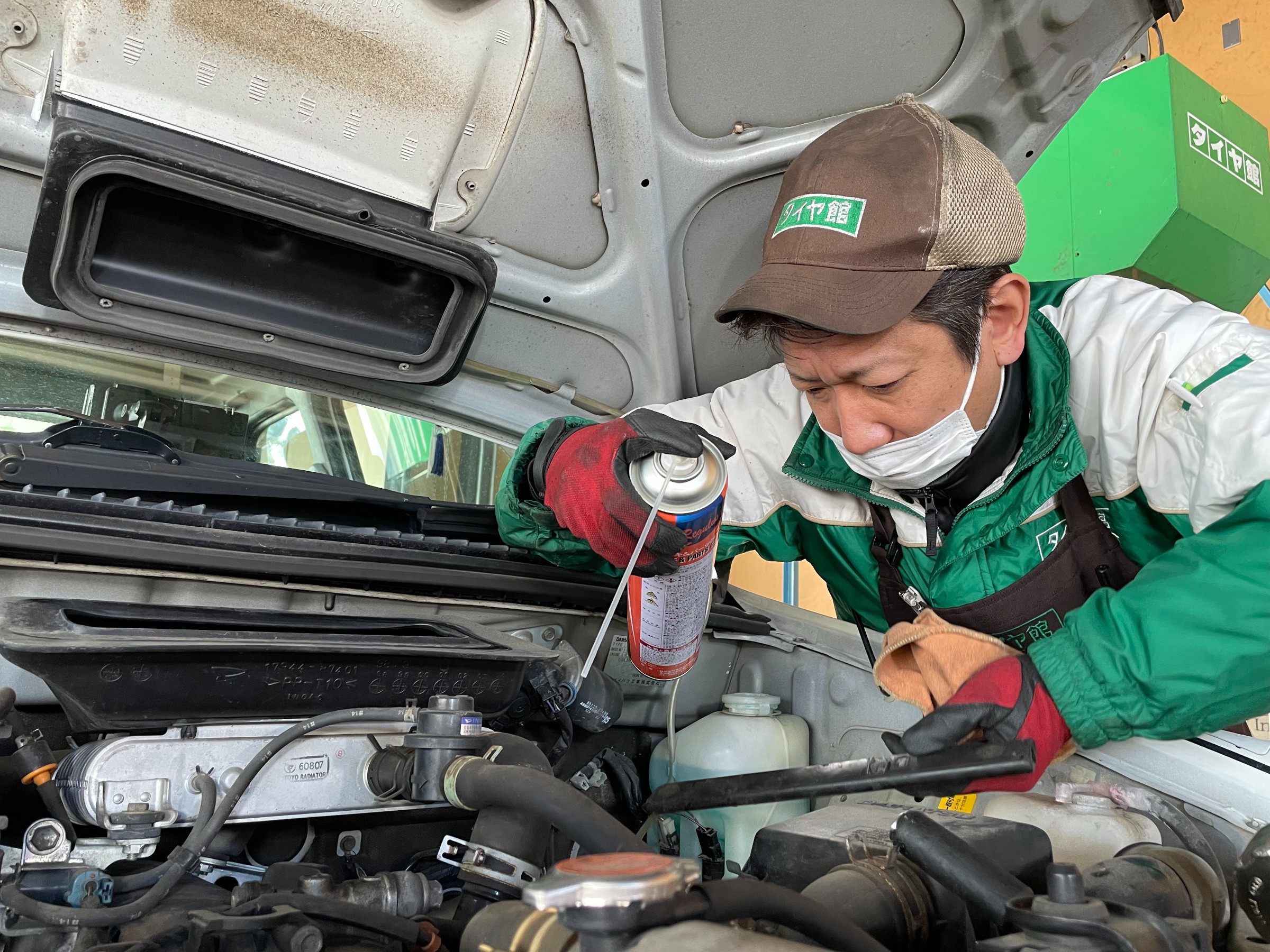 昔のお車に多かった、ボンネットからアクセスして交換するタイプでした。