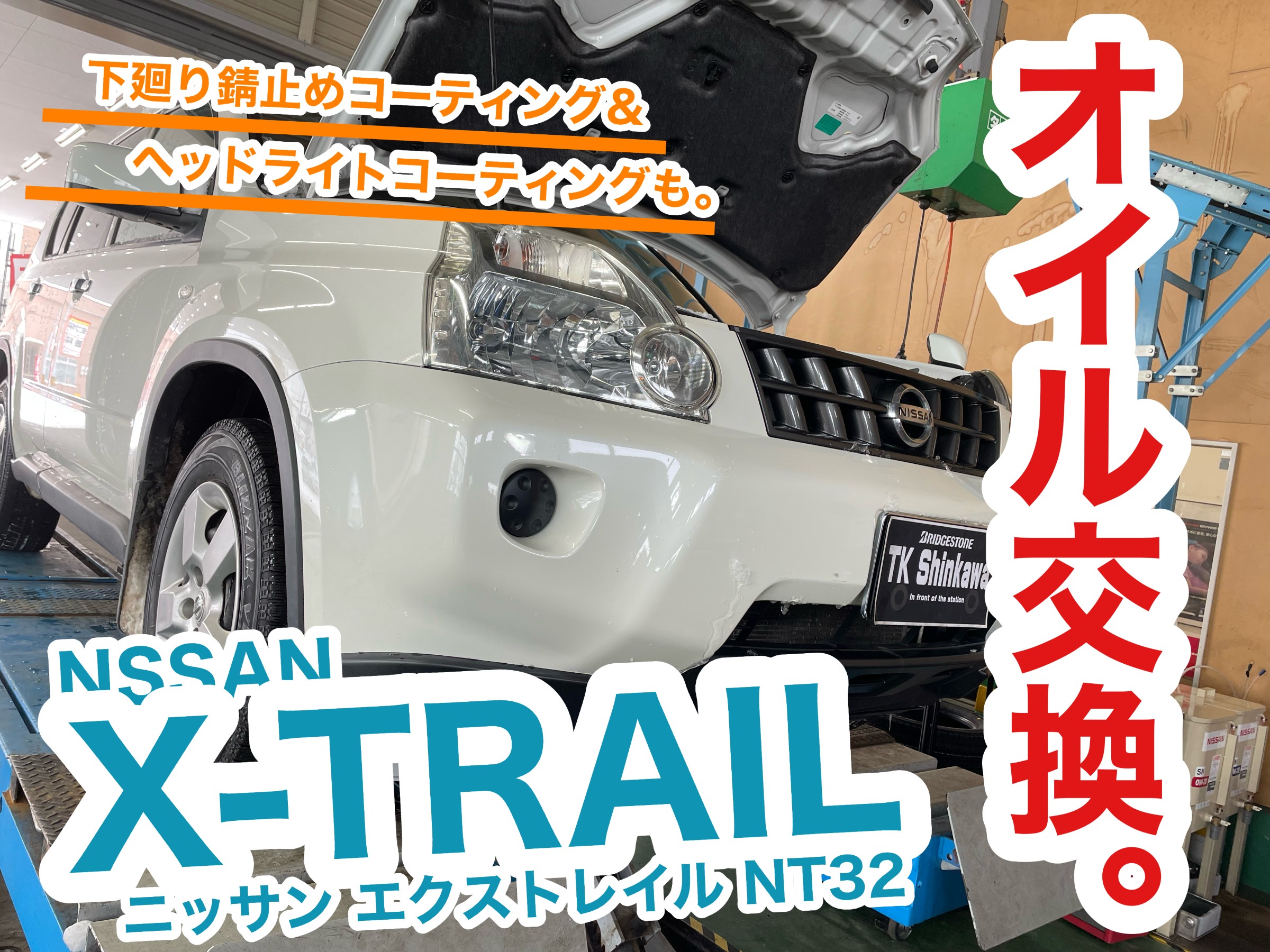 本日は、オイル交換でご入庫のエクストレイルに