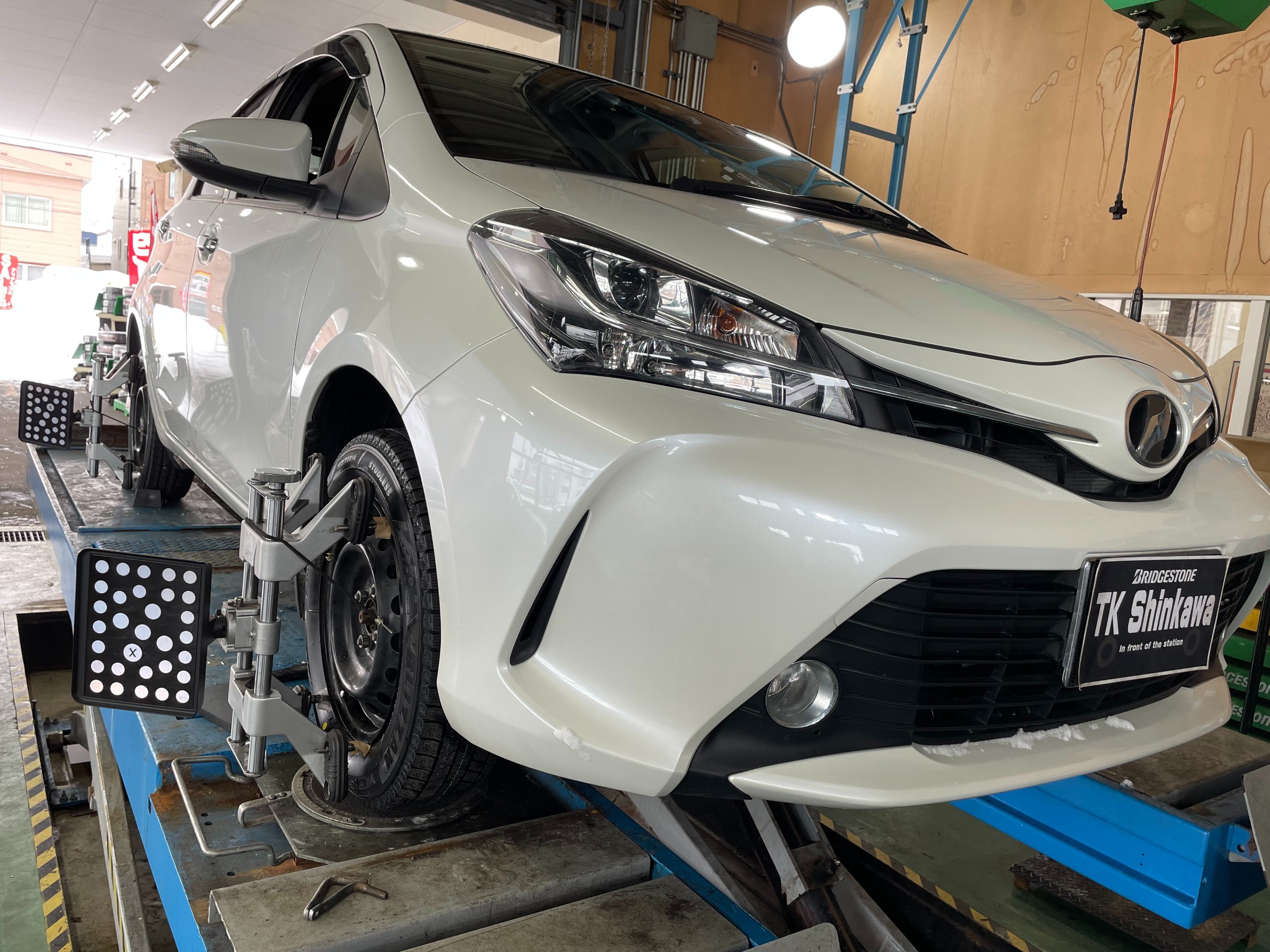 本日は、トヨタヴィッツにお乗りのお客様がタイヤ交換でご来店されました。