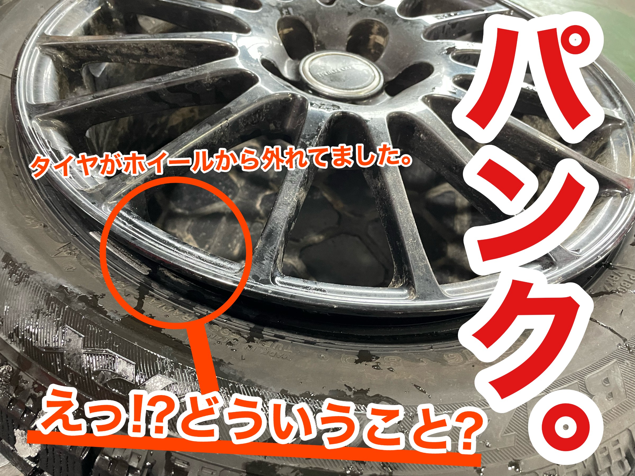 そして、タイヤがホイールから落ちていたんです!!
