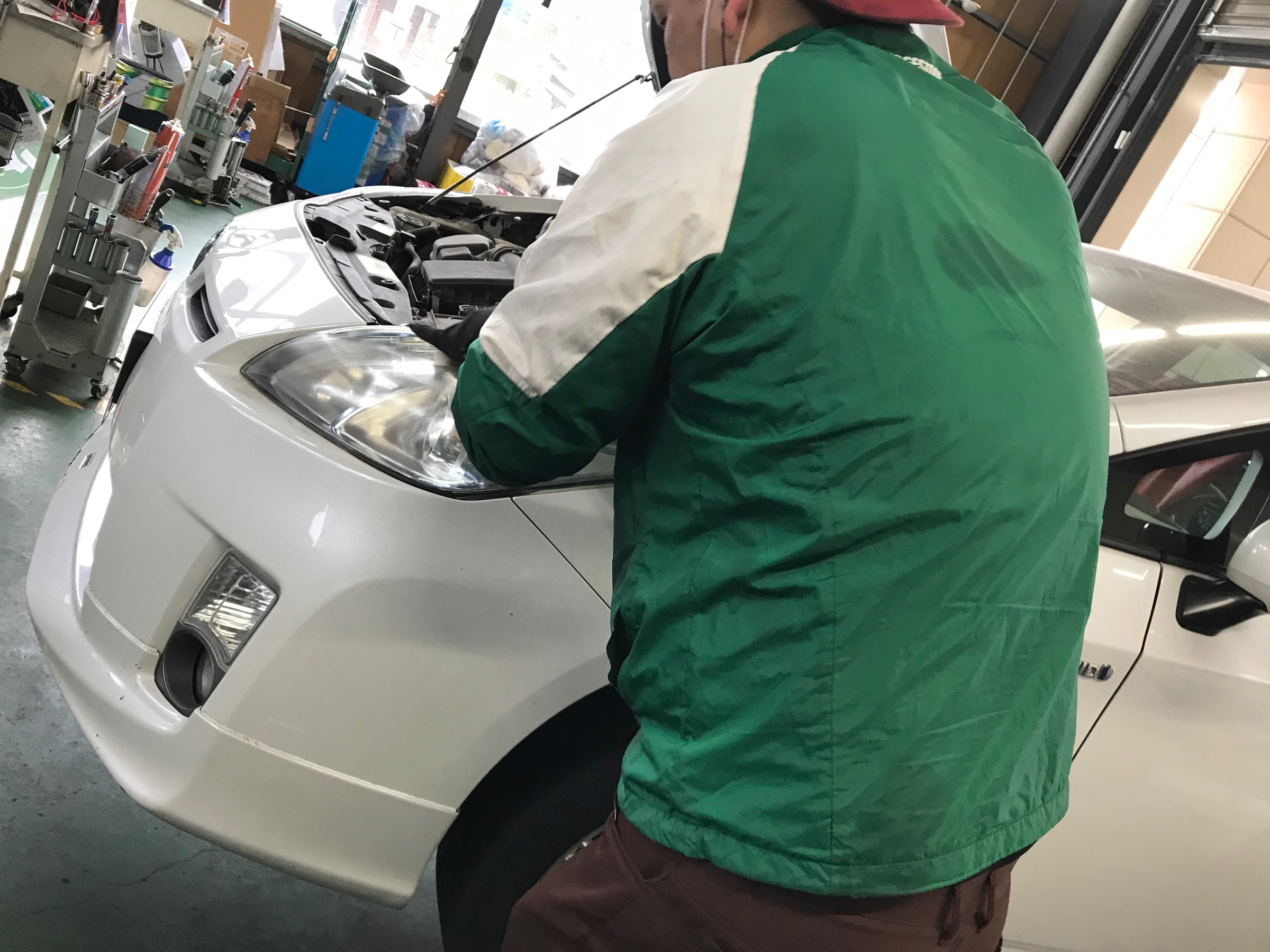 ご一緒にヘッドライトコーティングの施工も佐々木スタッフが実施中です!