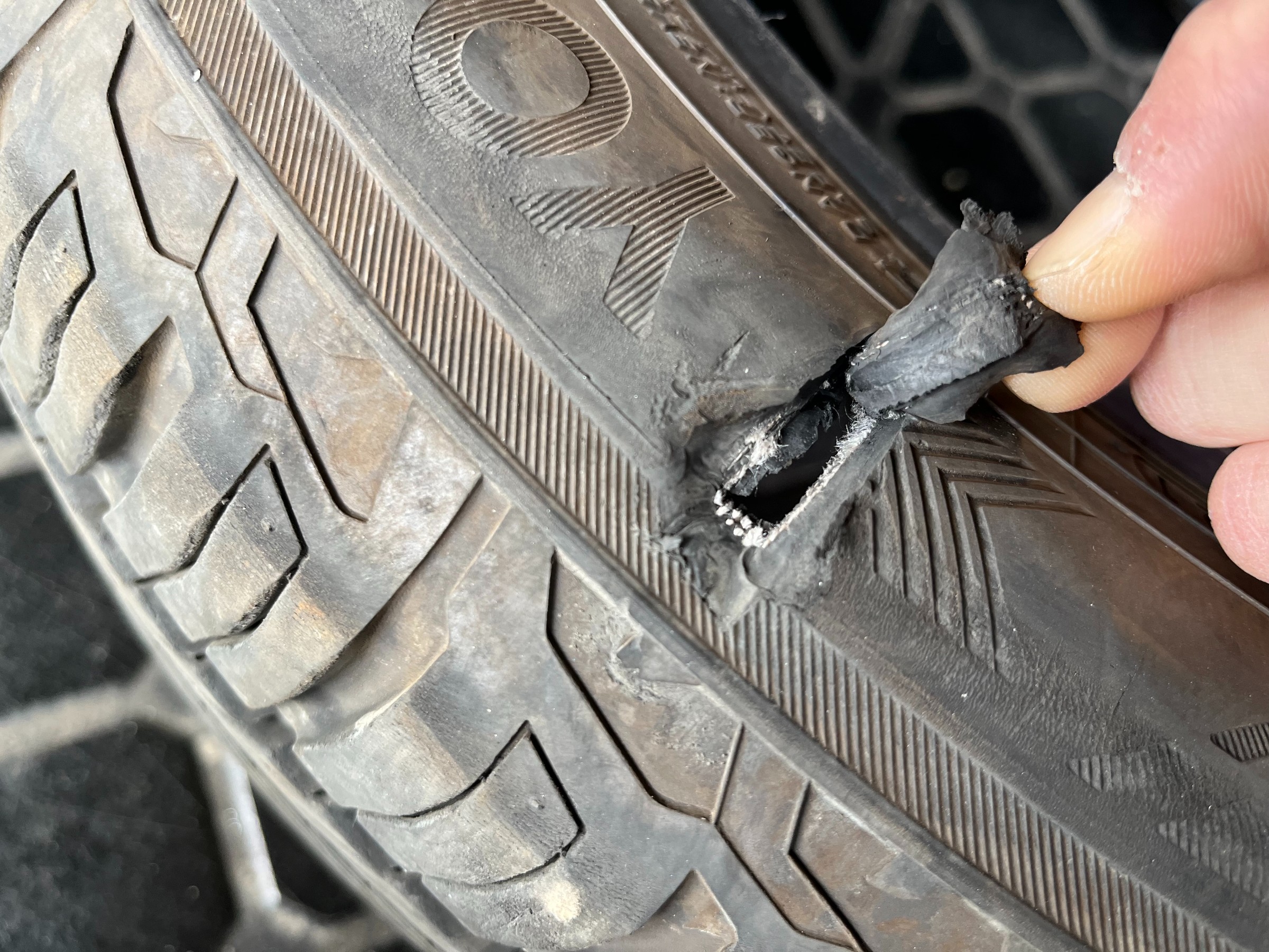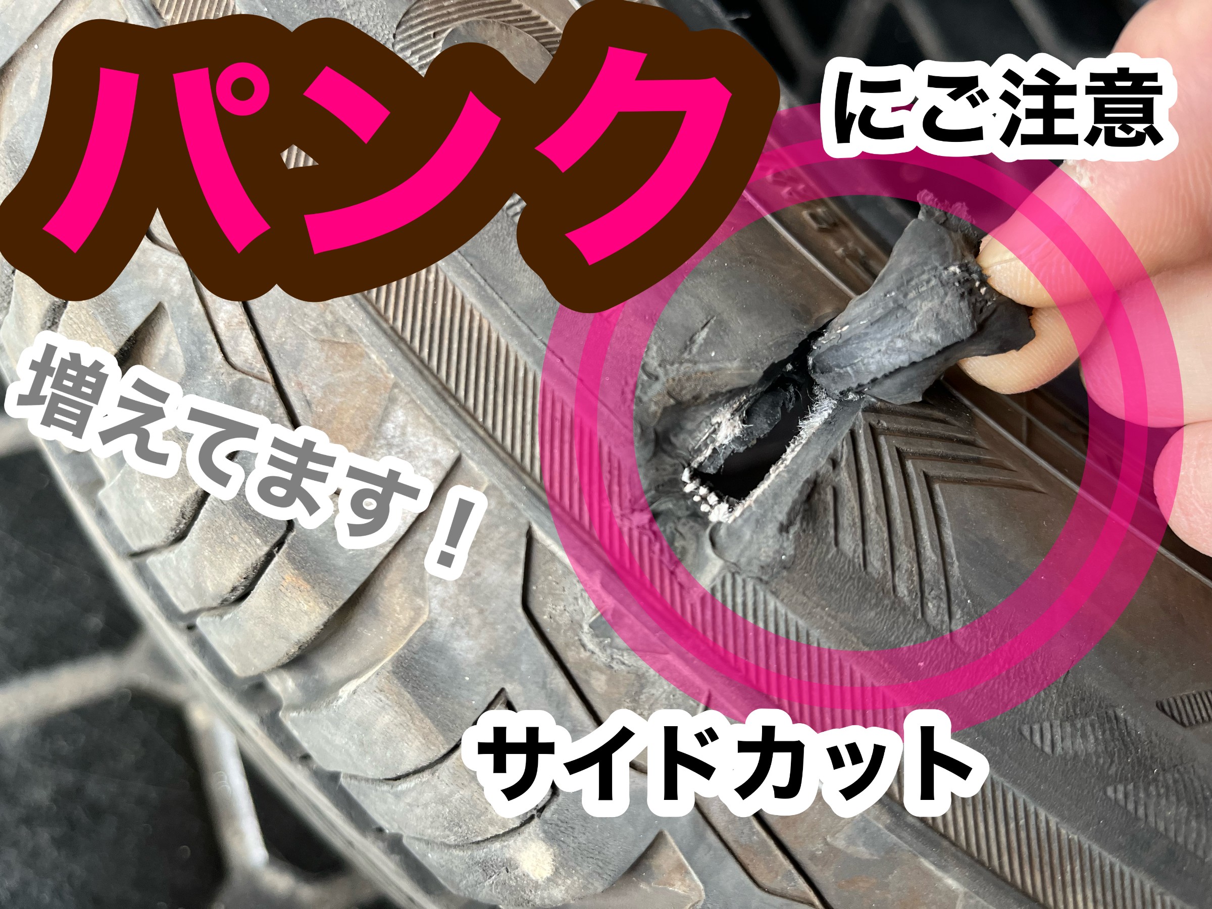 タイヤのサイド部は、薄く柔軟性がある為、少しでも損傷してしまうと