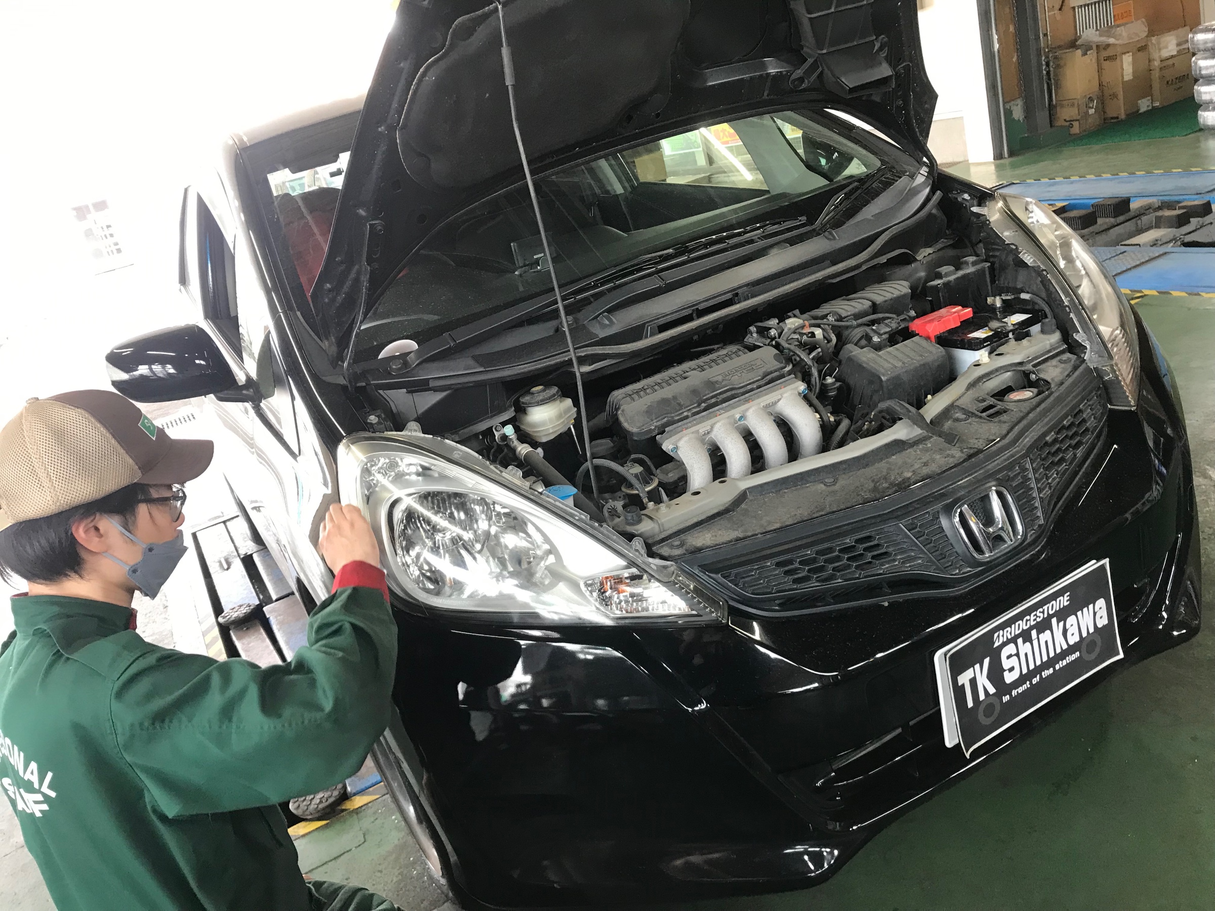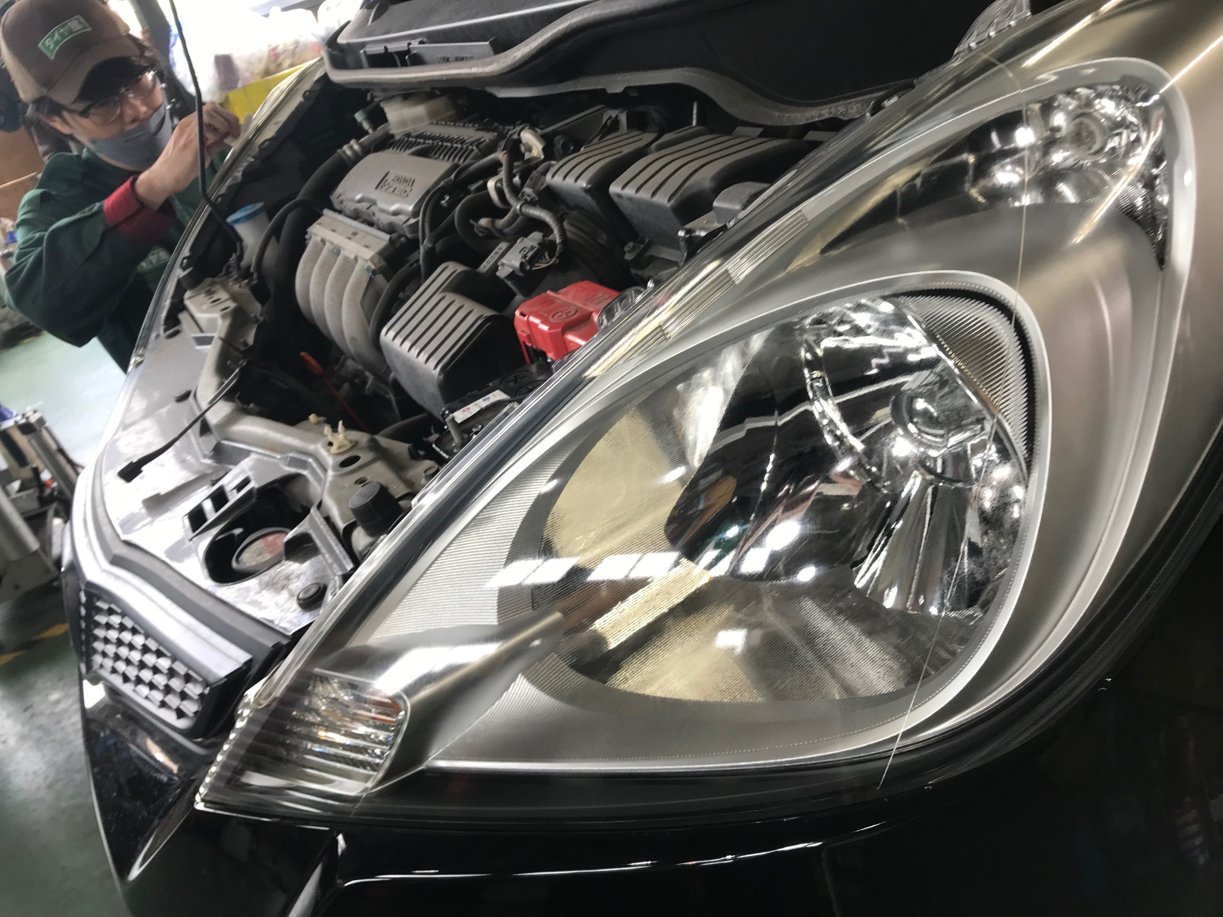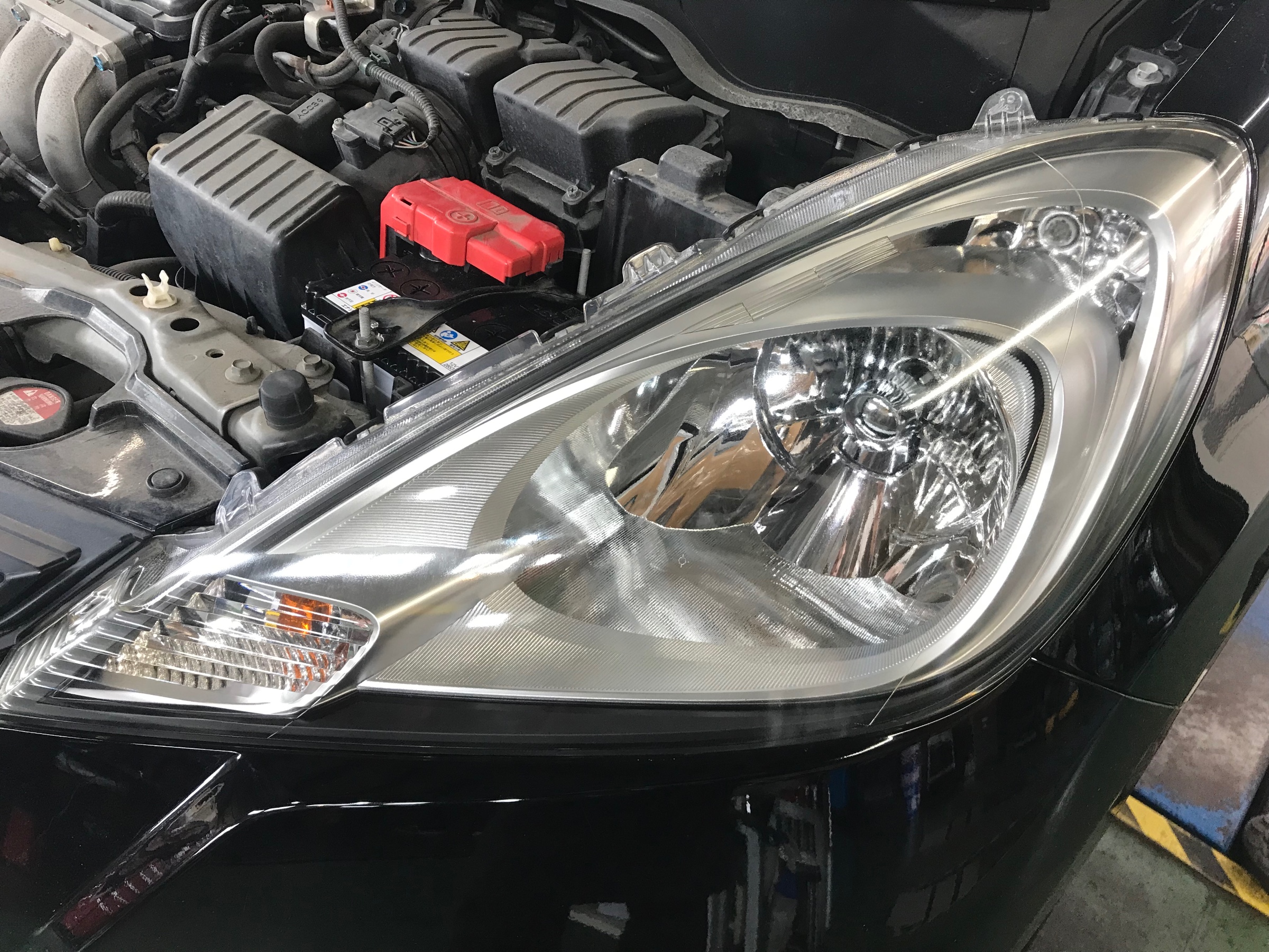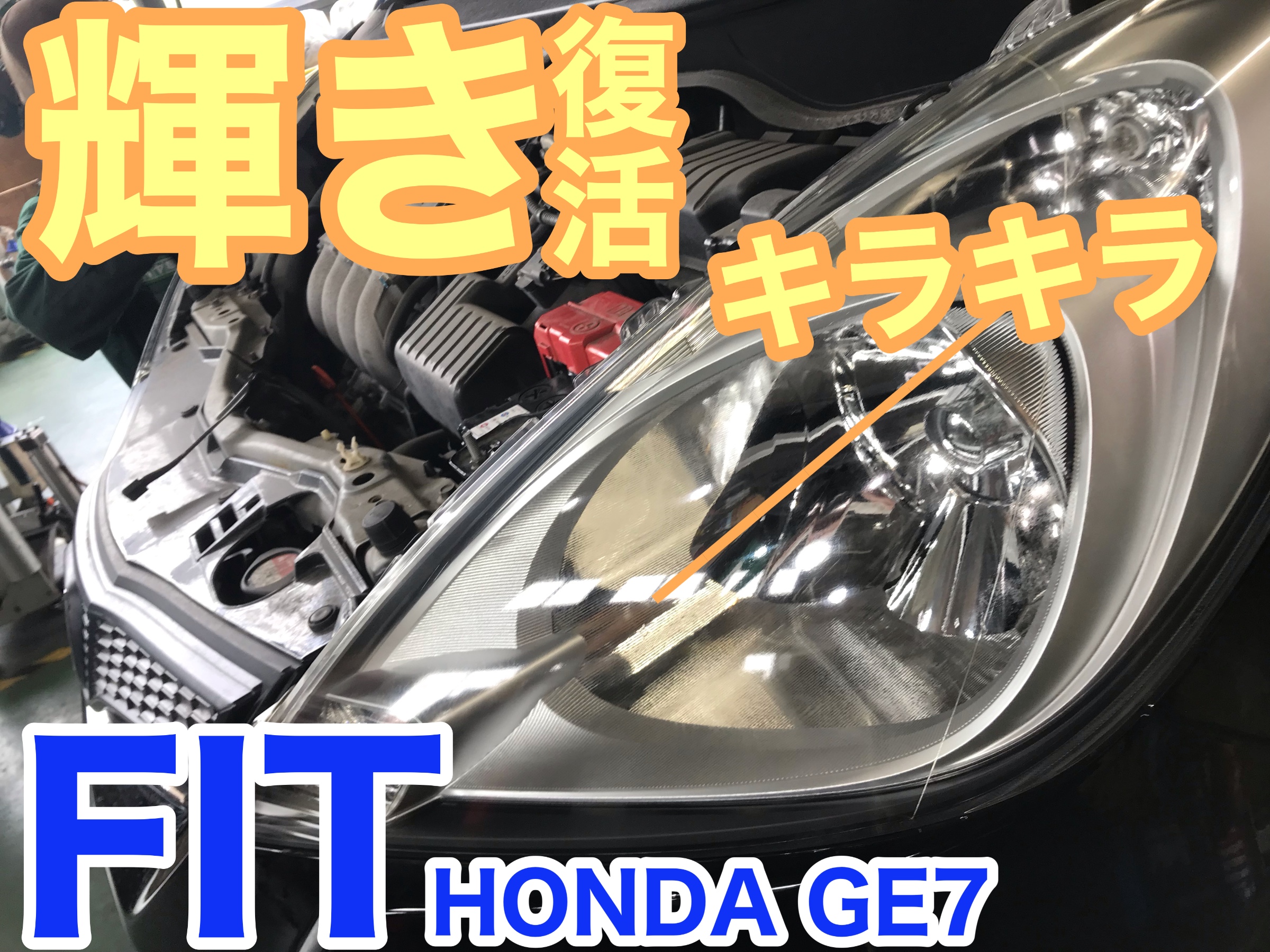 入庫頂いたフィットのヘッドライトコーティングを実施☆