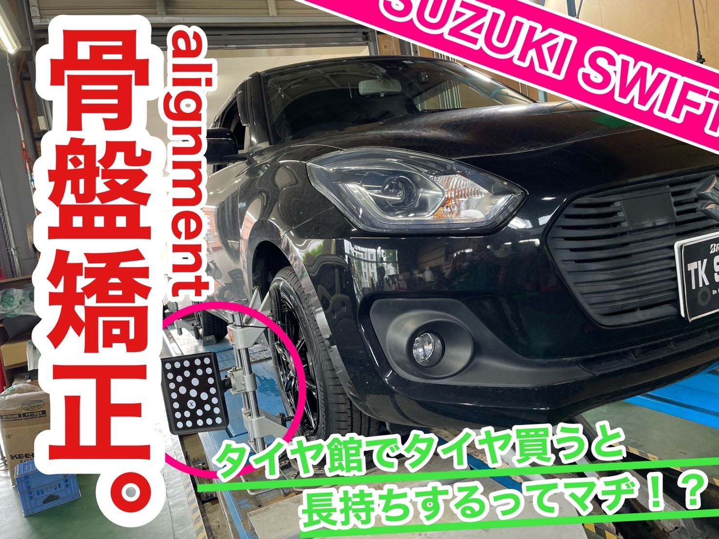 本日はスイフトに新品タイヤ・ホイール装着&アライメント調整作業をさせて頂きました!
