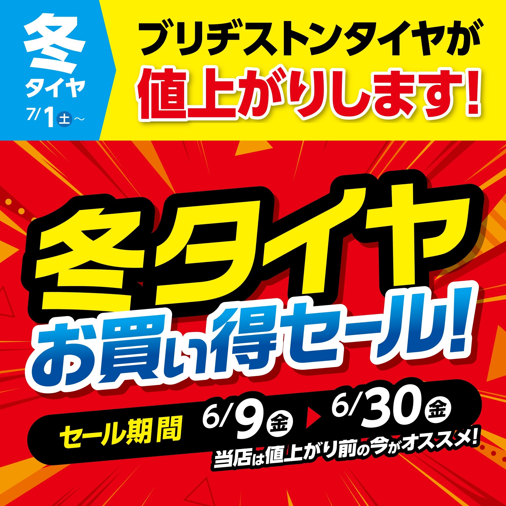 BRIDGESTONE 冬タイヤ値上がり致します。