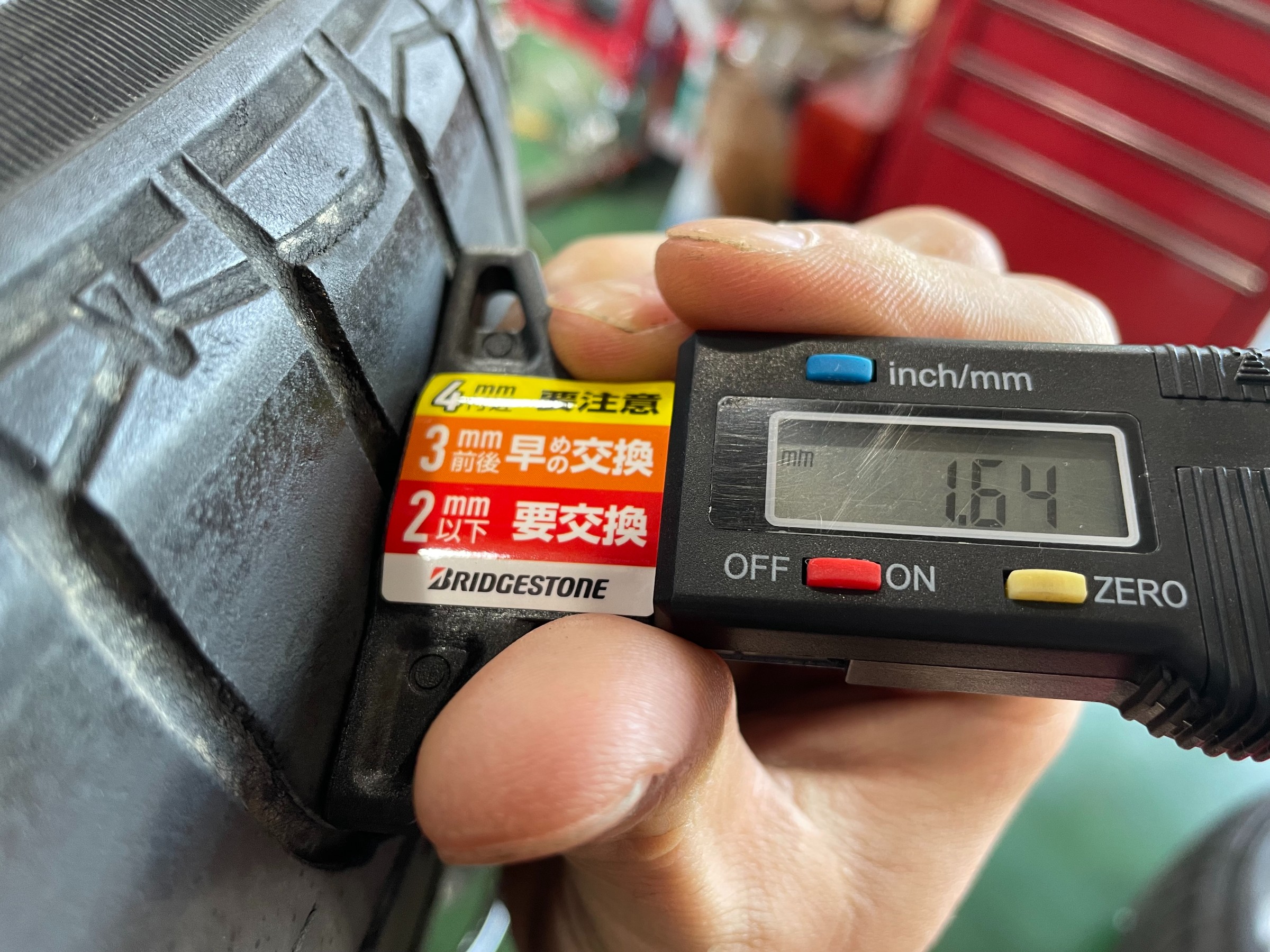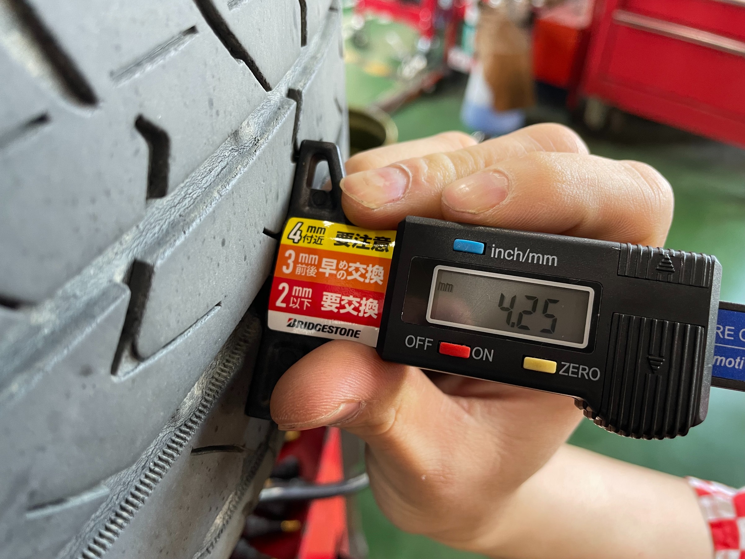 入庫しなければ気付かなたったタイヤの異常を