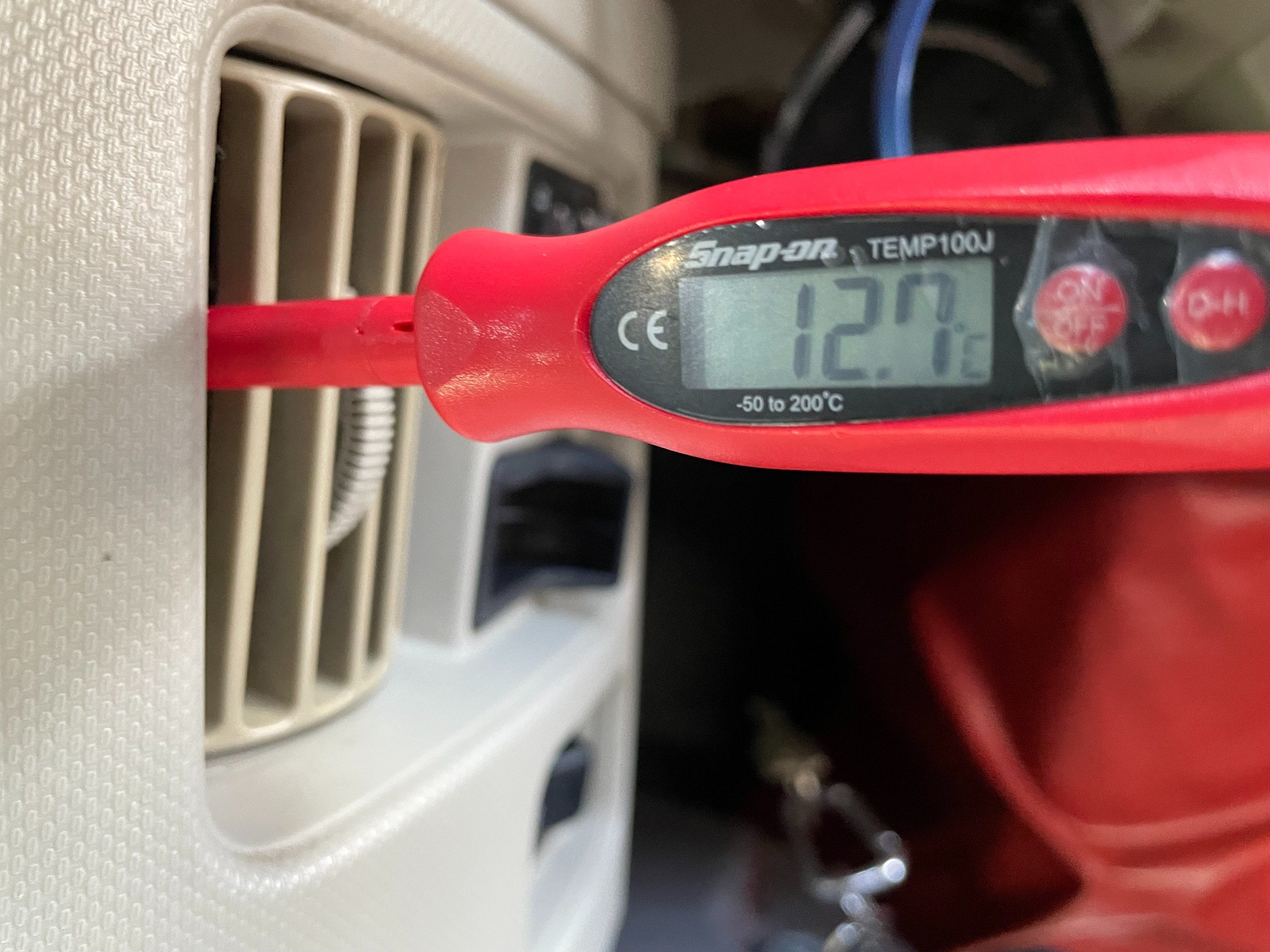 注入前のエアコン吹き出し口温度は12.7℃