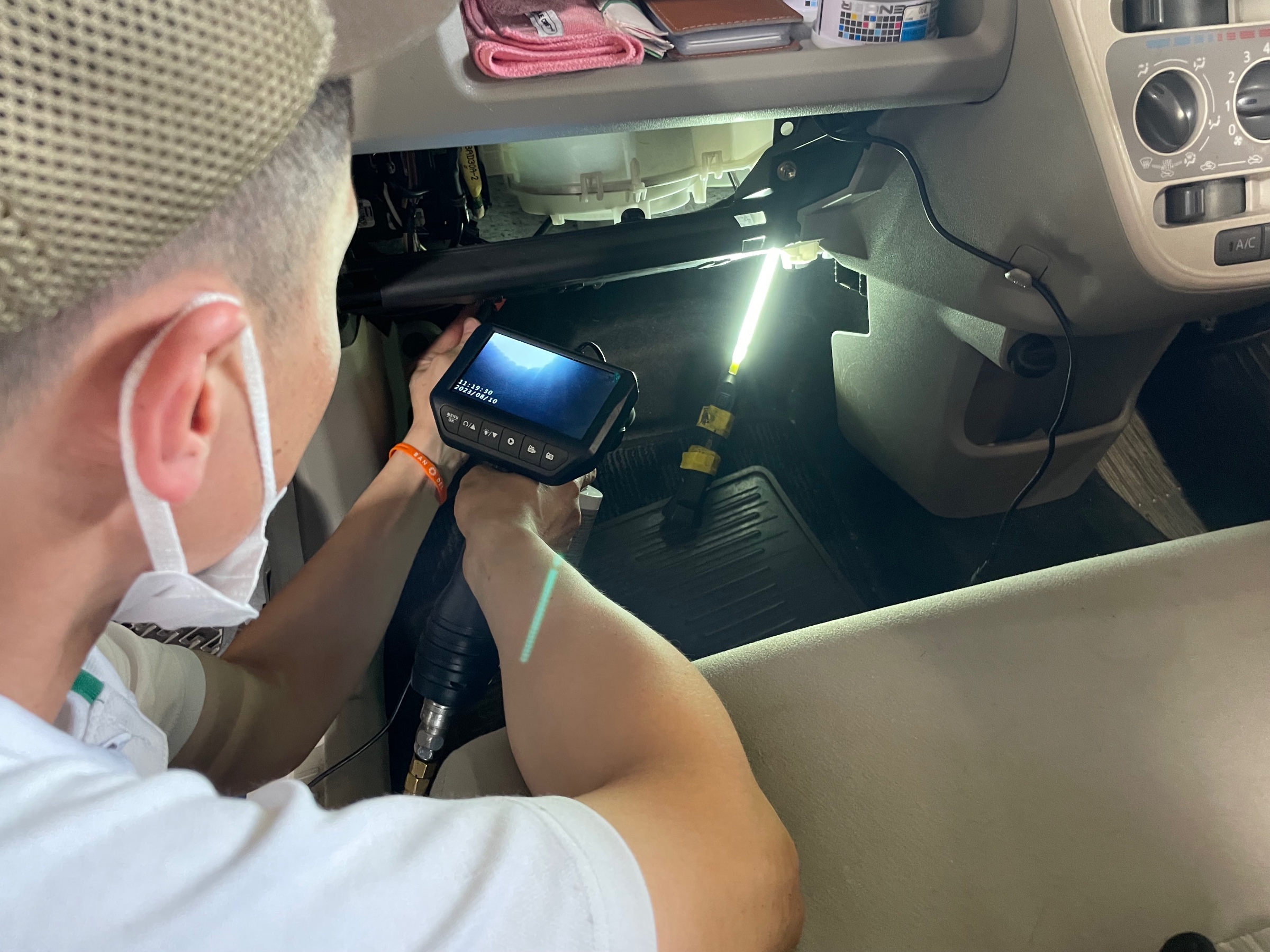 車検でエアコン関係のクリーニング作業を実施中!