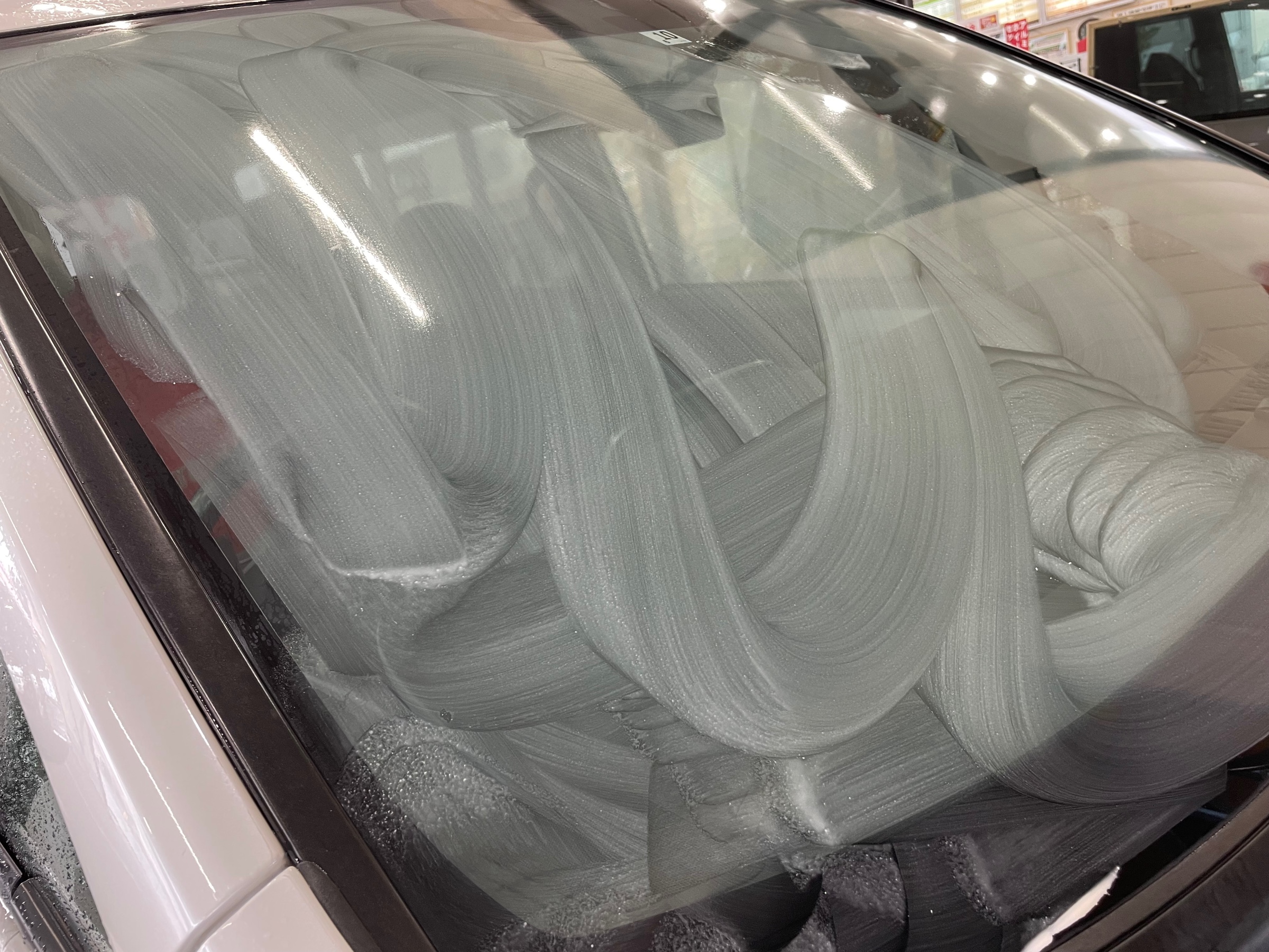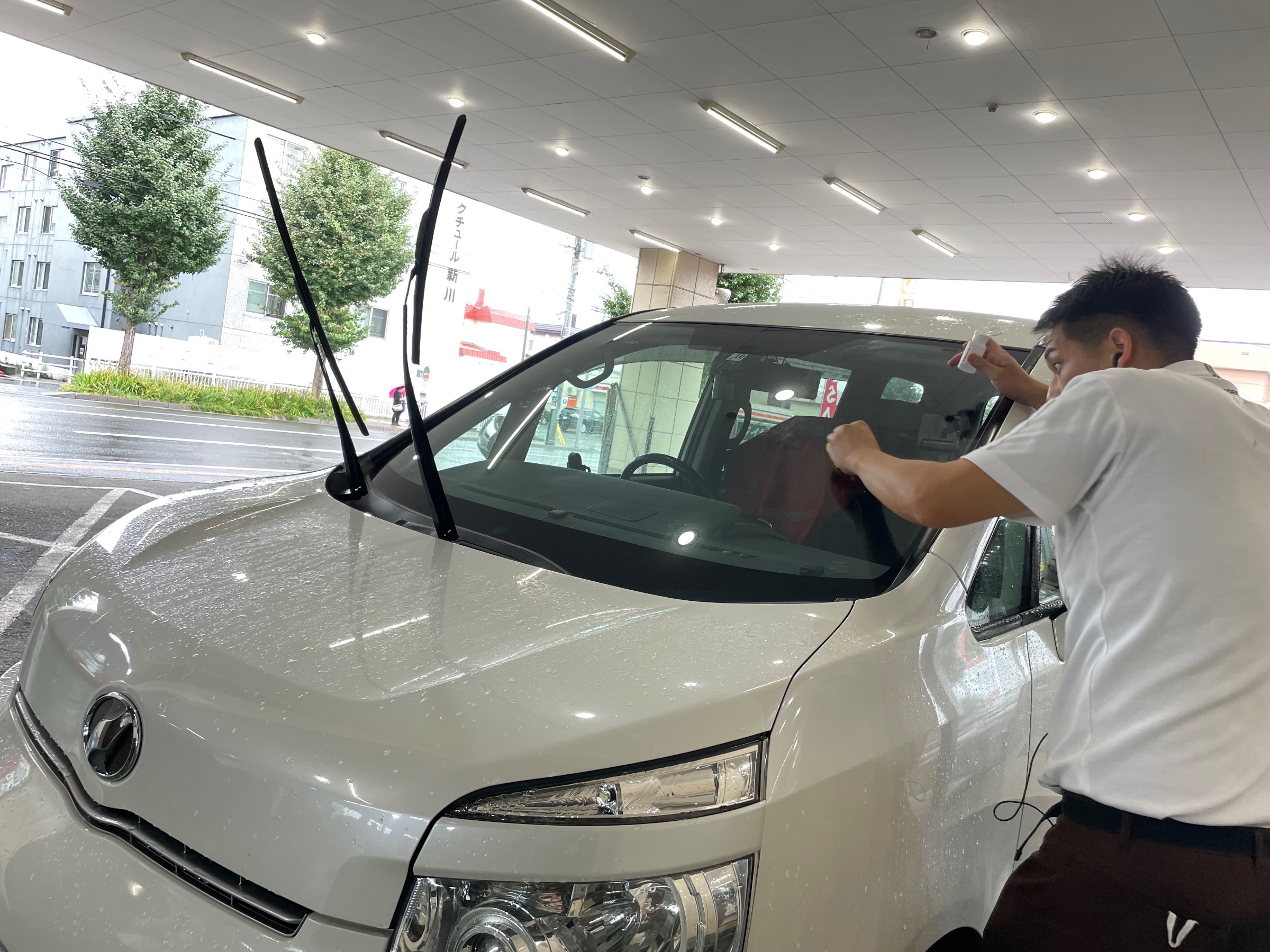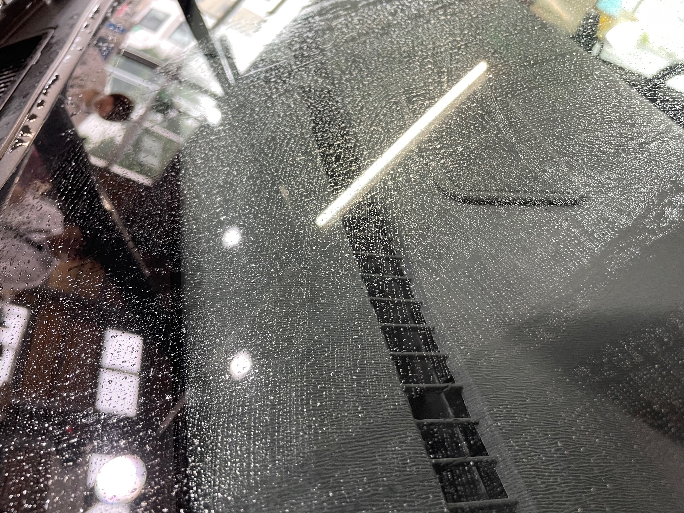 オイル交換と同時に油膜取り&撥水施工をさせて頂きました!