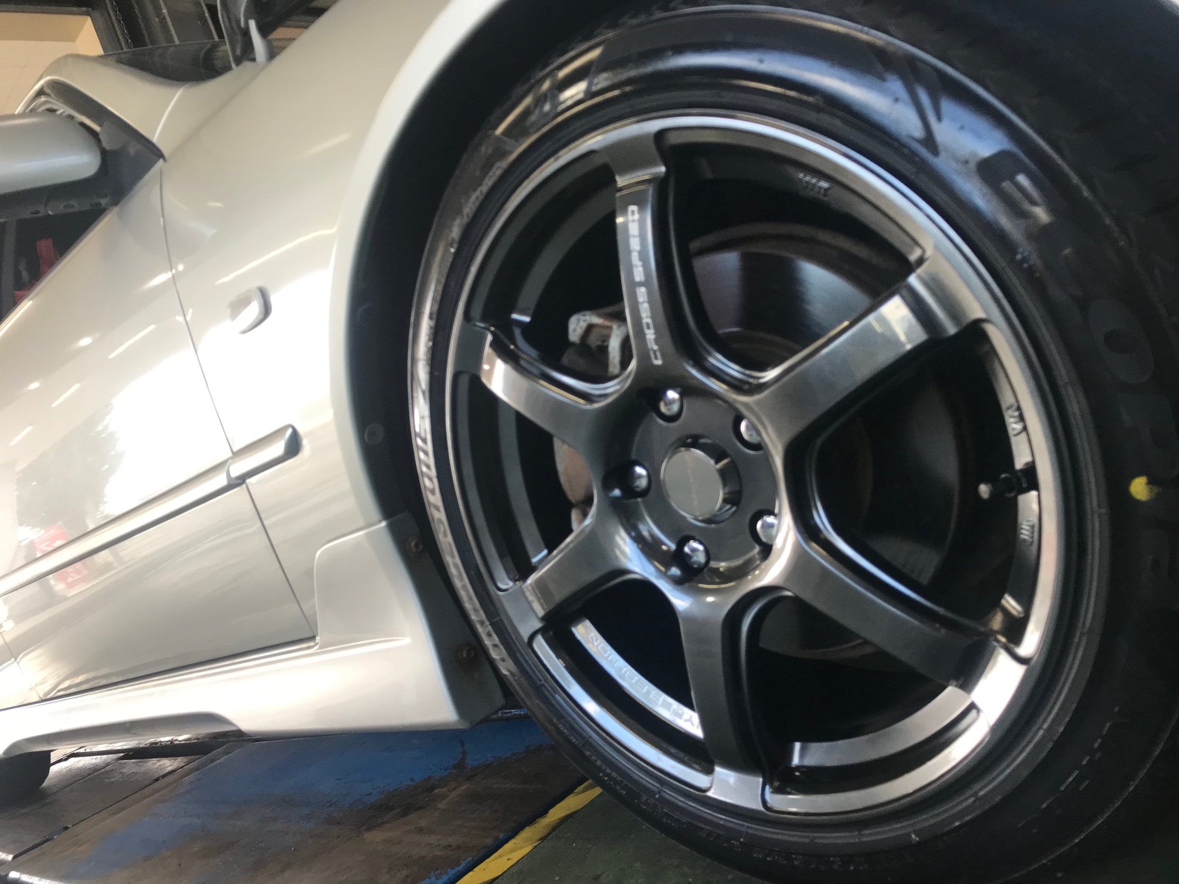 新しいタイヤですのでアライメントを実施手のお返しです!