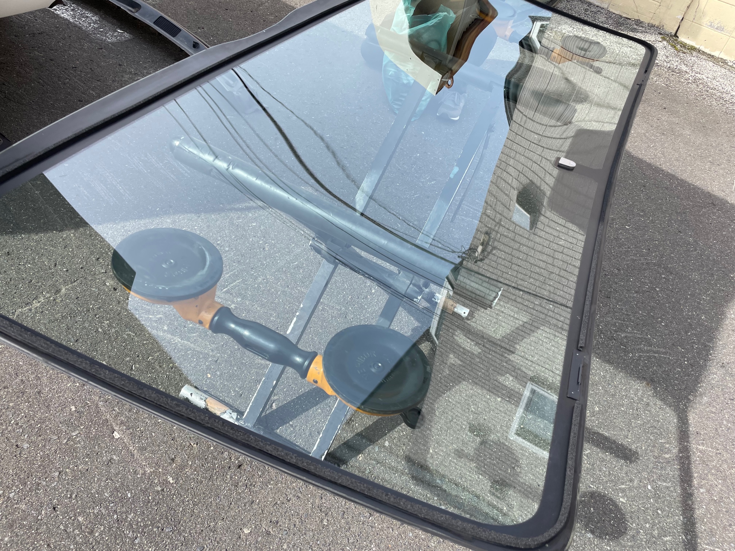 取り付けるガラスを準備中のよう・・・
