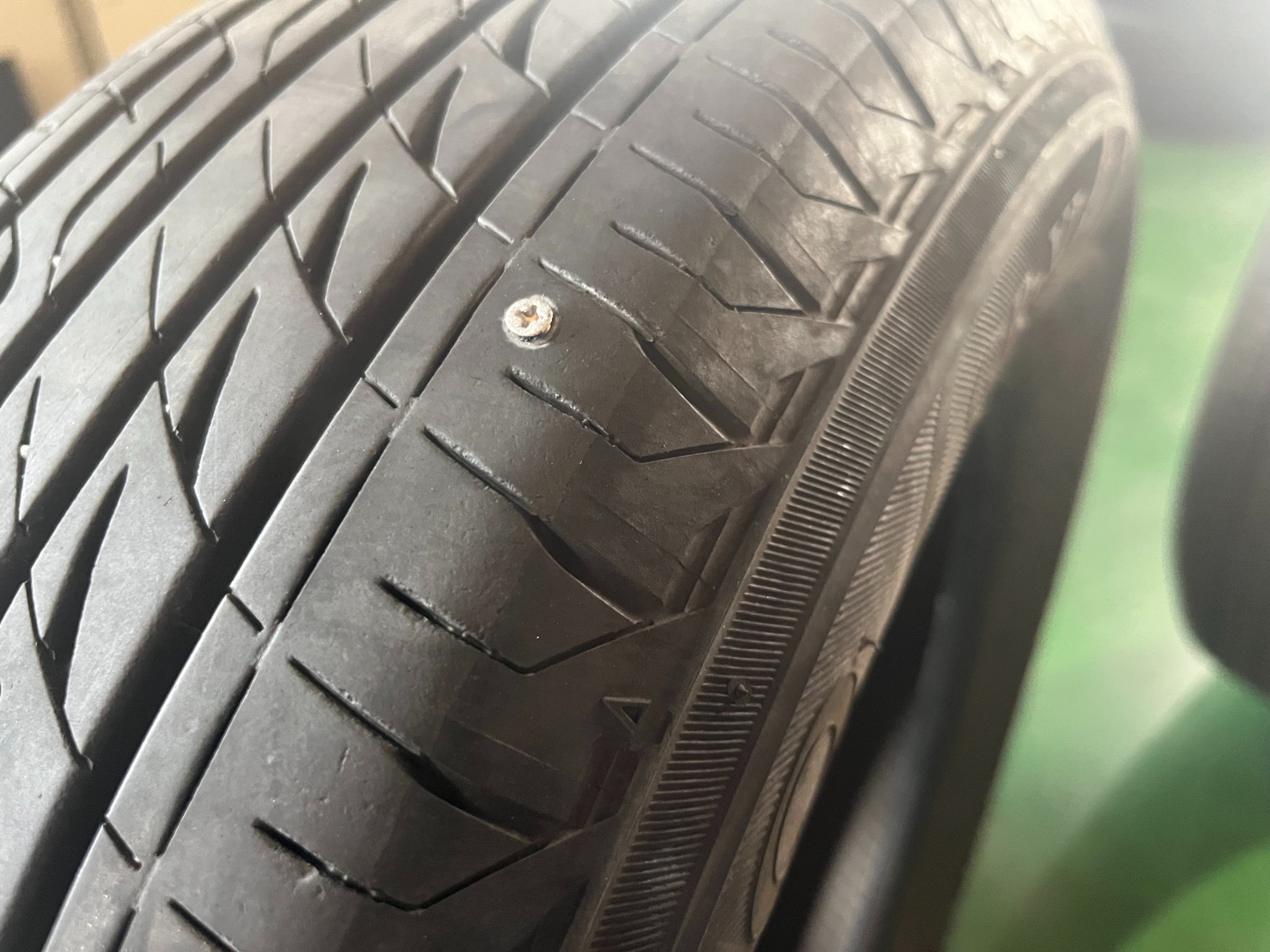 タイヤの端に釘が刺さっている為、再発の恐れがある