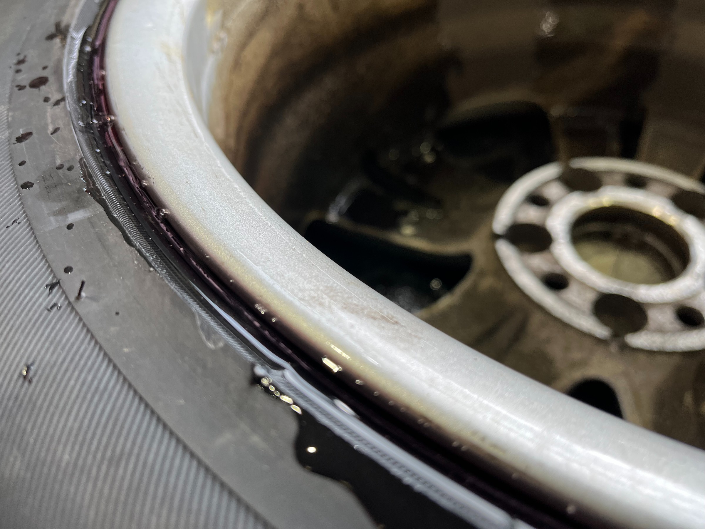 組み替えが終わった後に、リム部分のエアーもれチェックを実施。