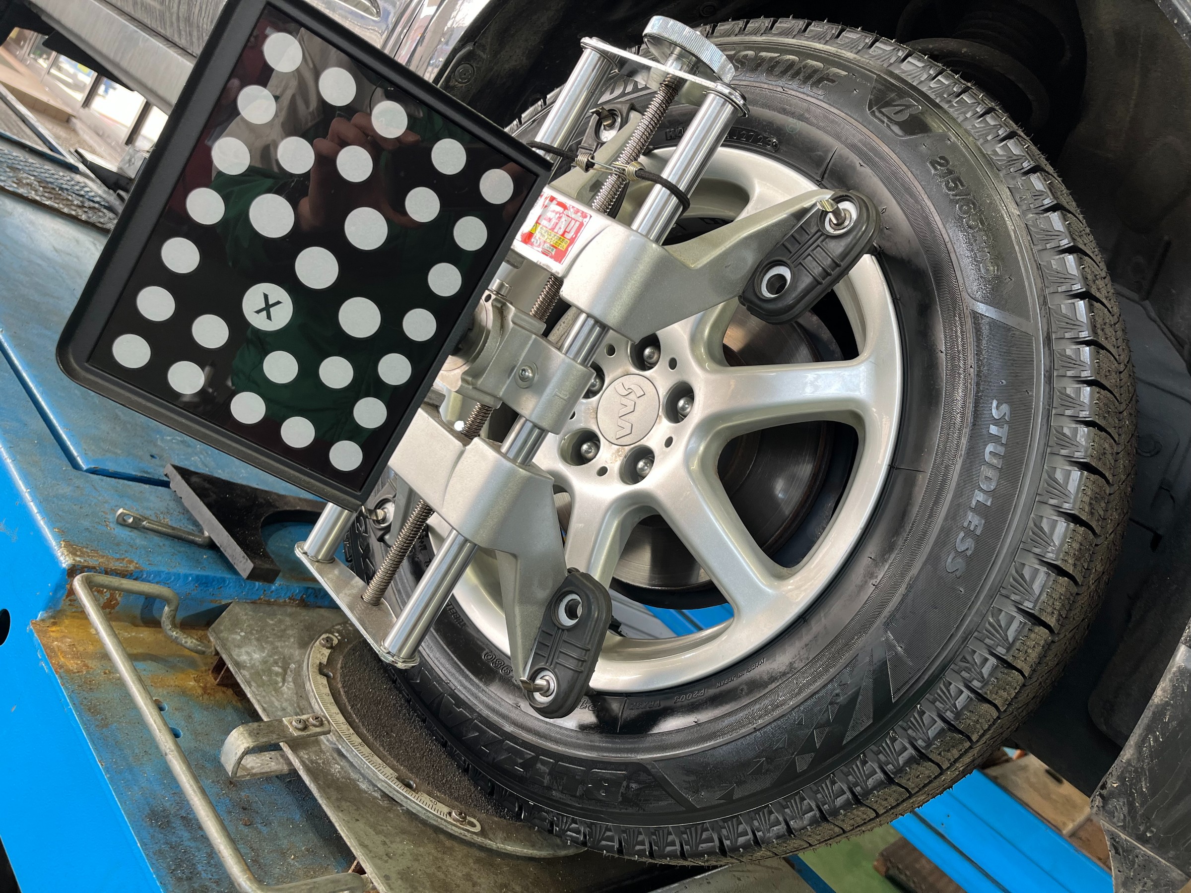 (アライメント調整=タイヤの取付け角度の調整)