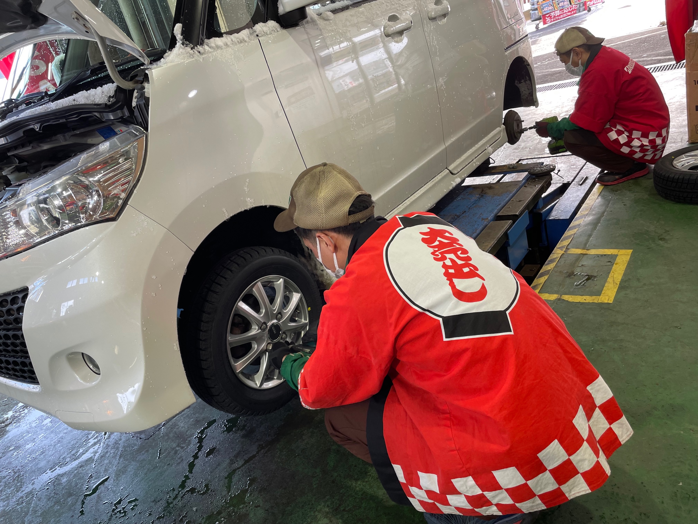 タイヤ交換の作業と同時作業で、