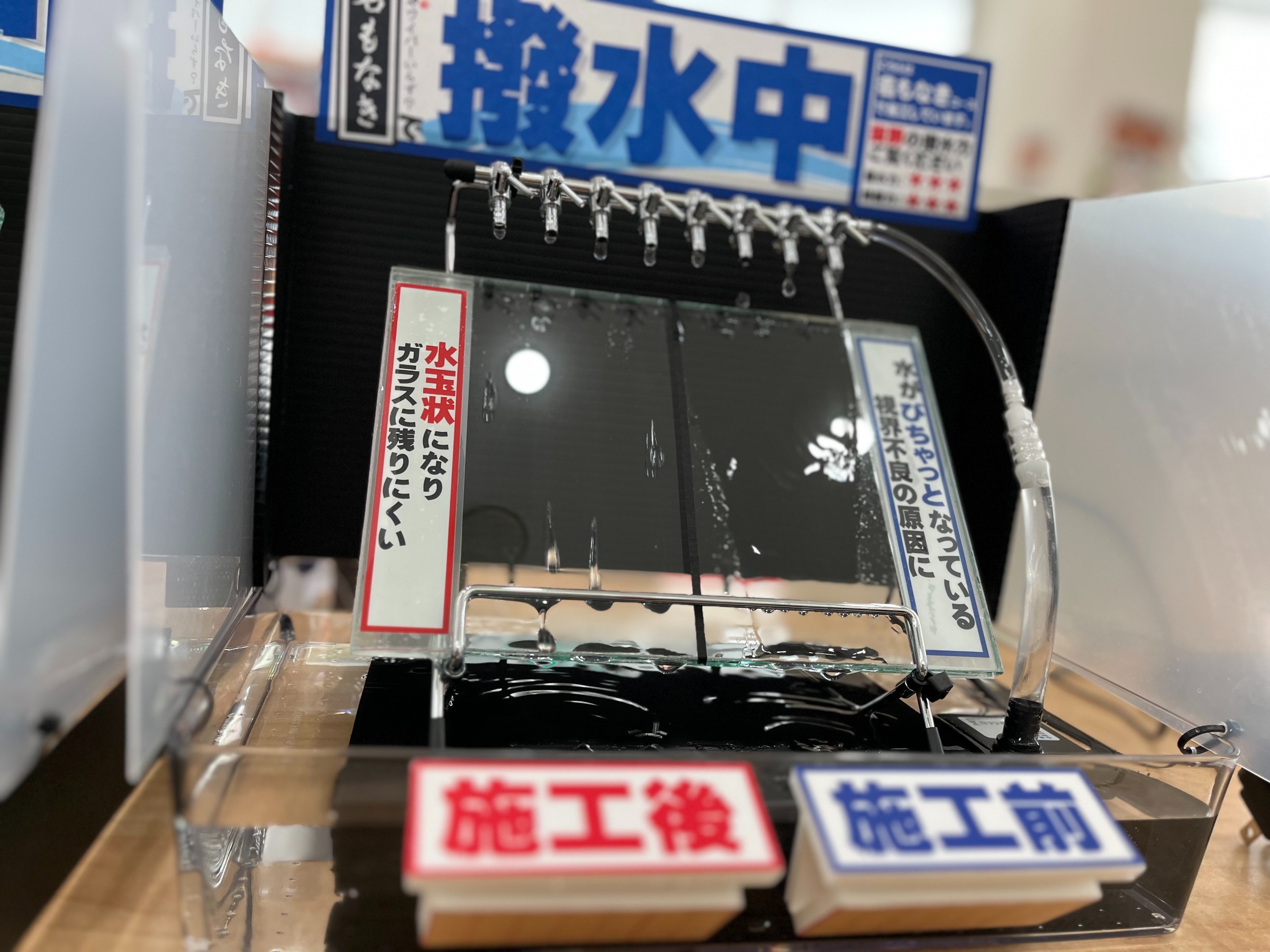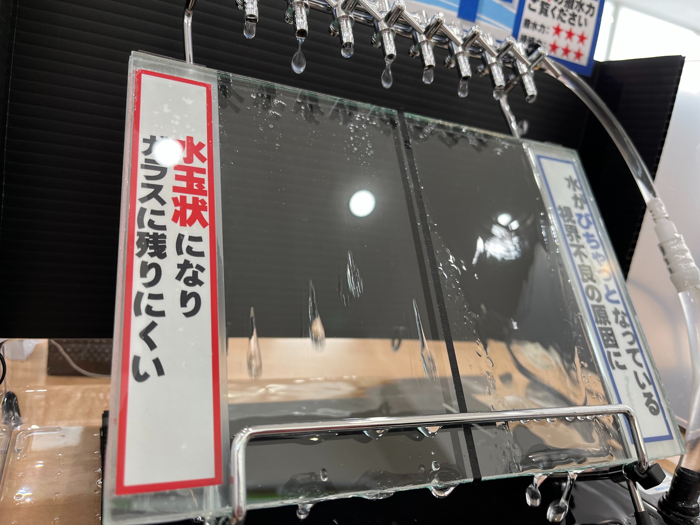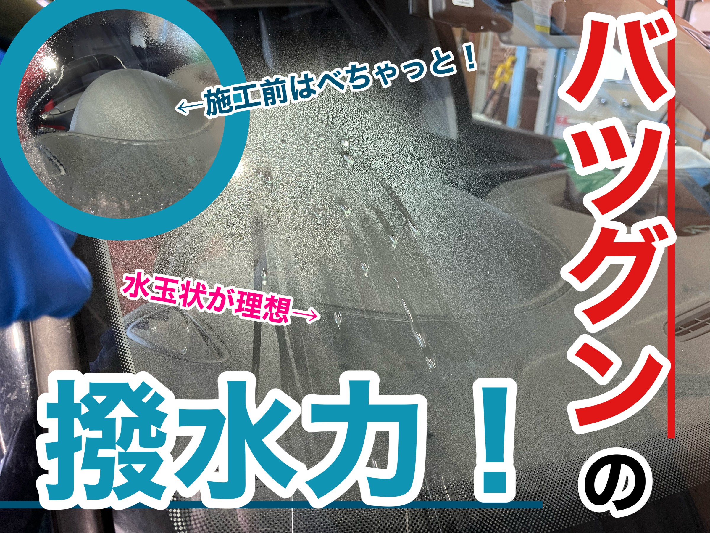 ガラスが撥水していないと、水が「びちゃっと」なって非常に見にくいんです。