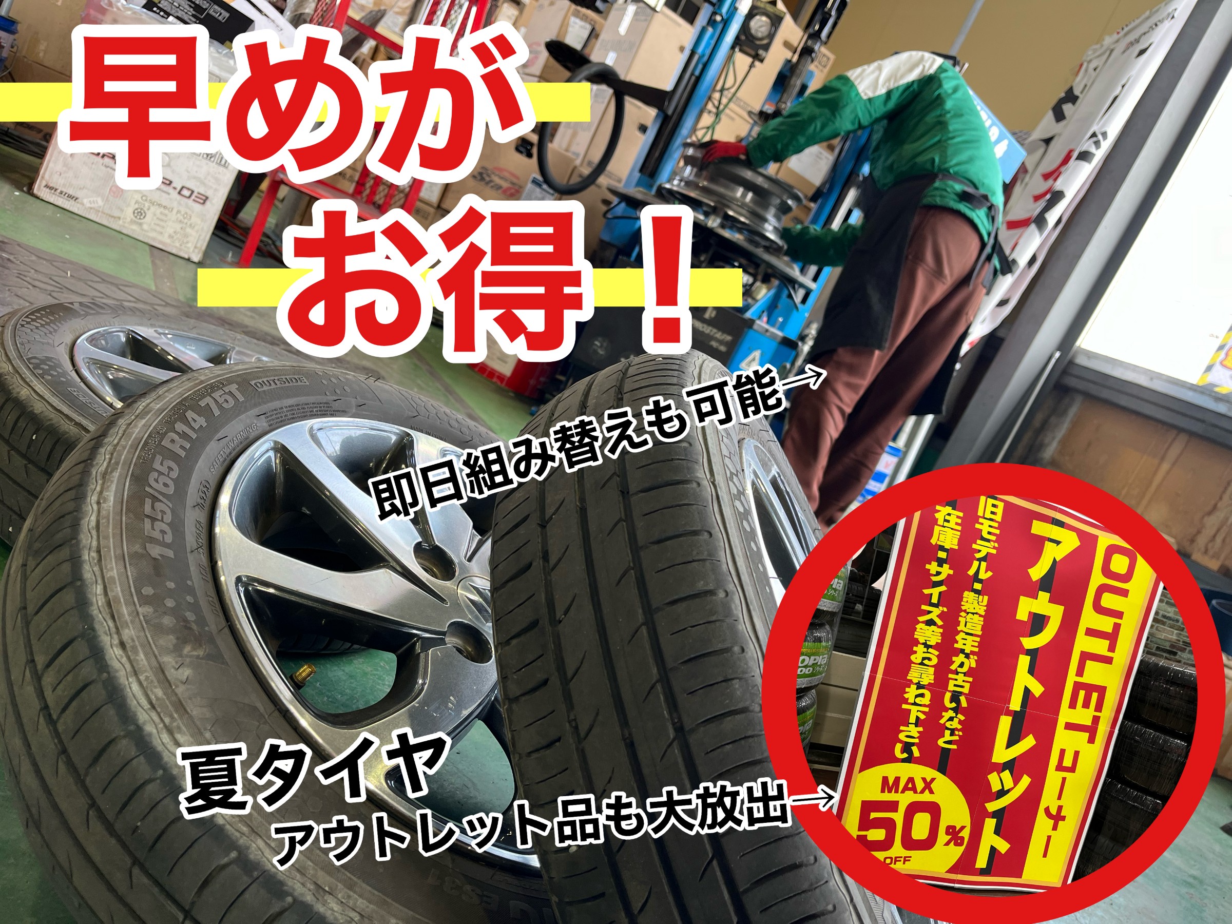 夏タイヤ!早目がお得!即日組替えお持ち帰りも可能!?