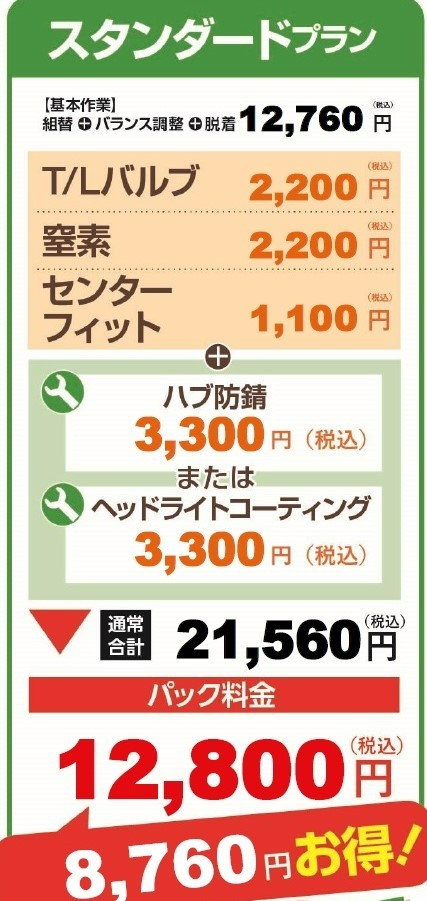 「スタンダードプラン」でタイヤ交換実施です。