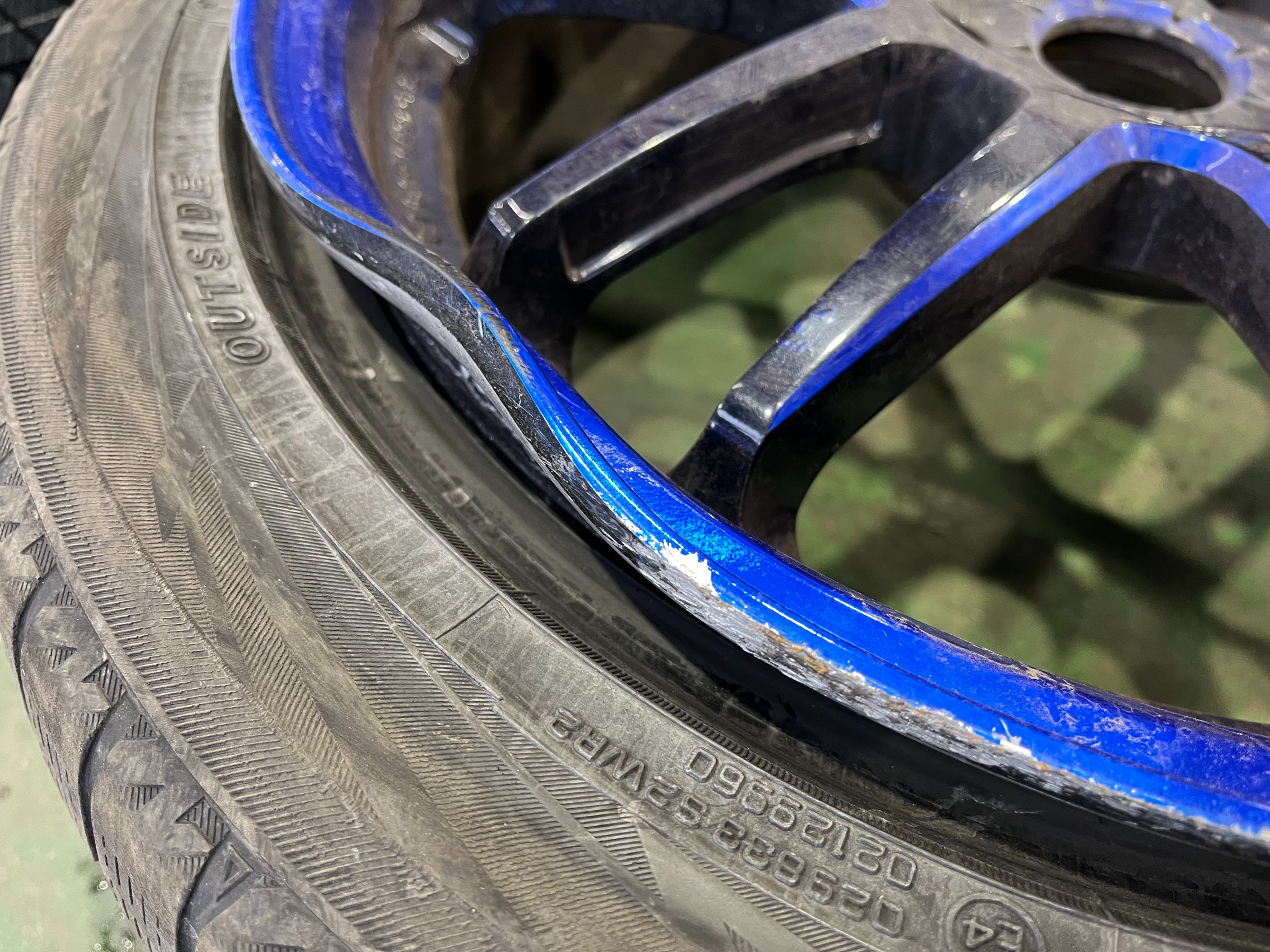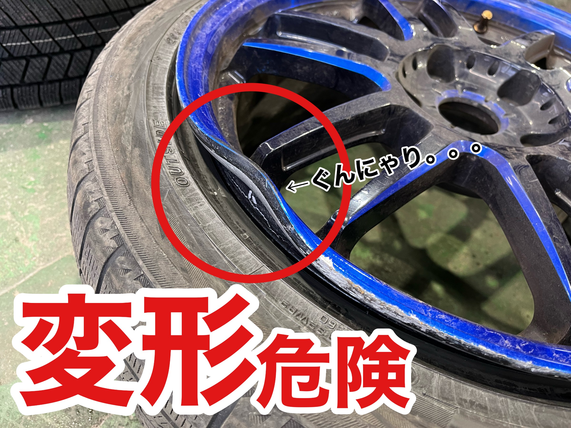 完全にタイヤがホイールから外れてしまっている状態。