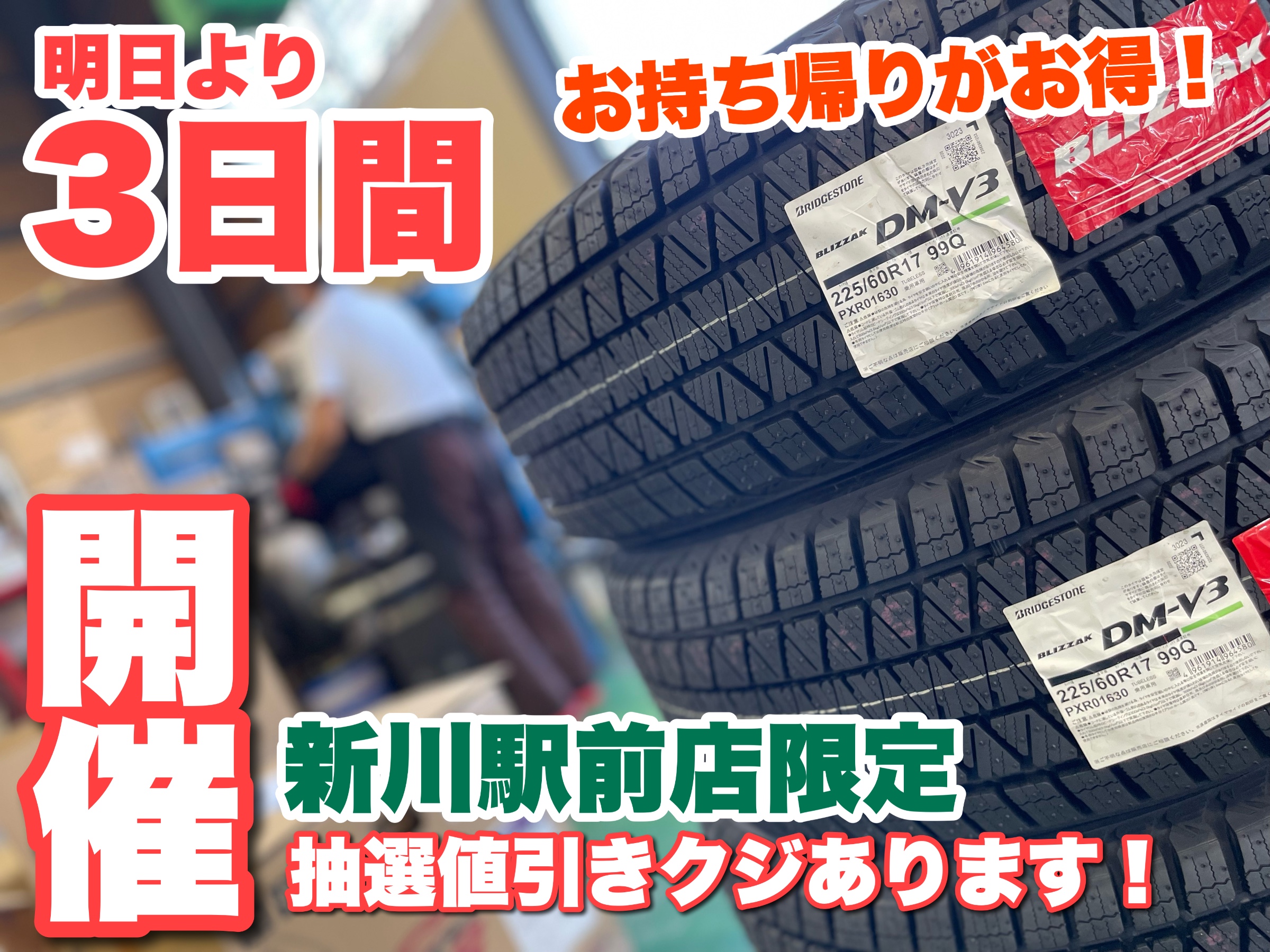 新川駅前店限定で3,000円~5,000円の抽選値引きクジを実施中です!