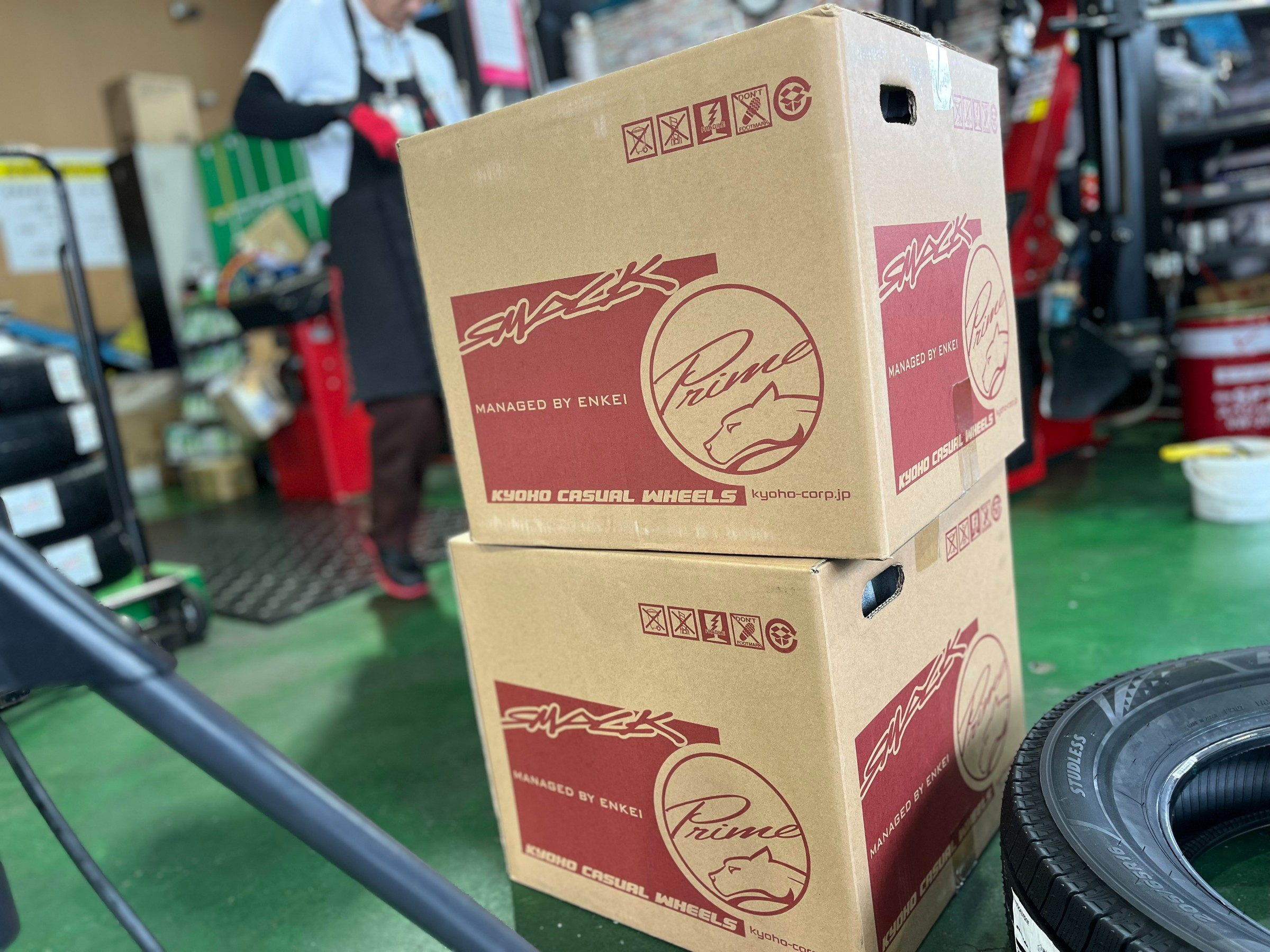 スタッドレストセットで購入した新しいホイールへ組み込むんです!!