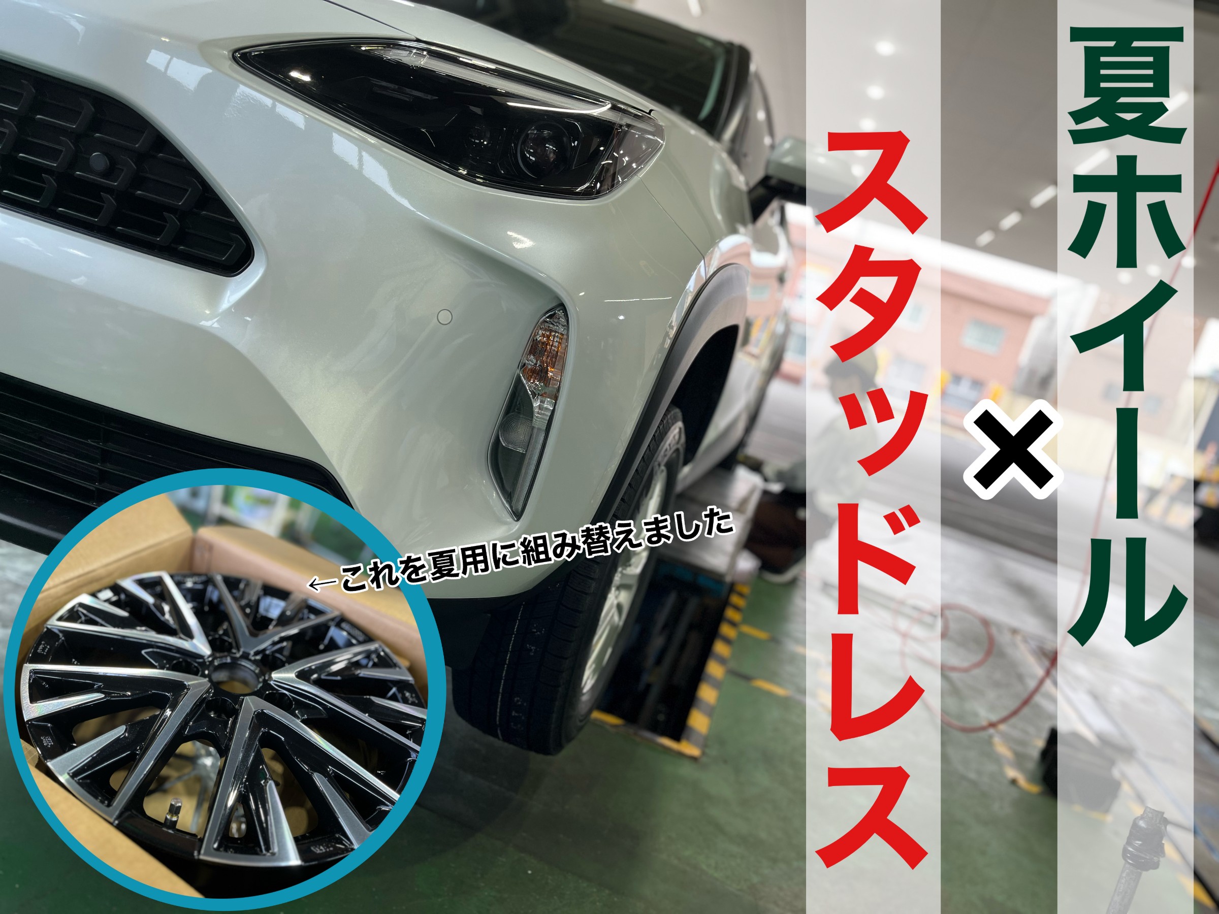 新しいホイールはいままで履いていたい夏タイヤへ組み込むことを言います。