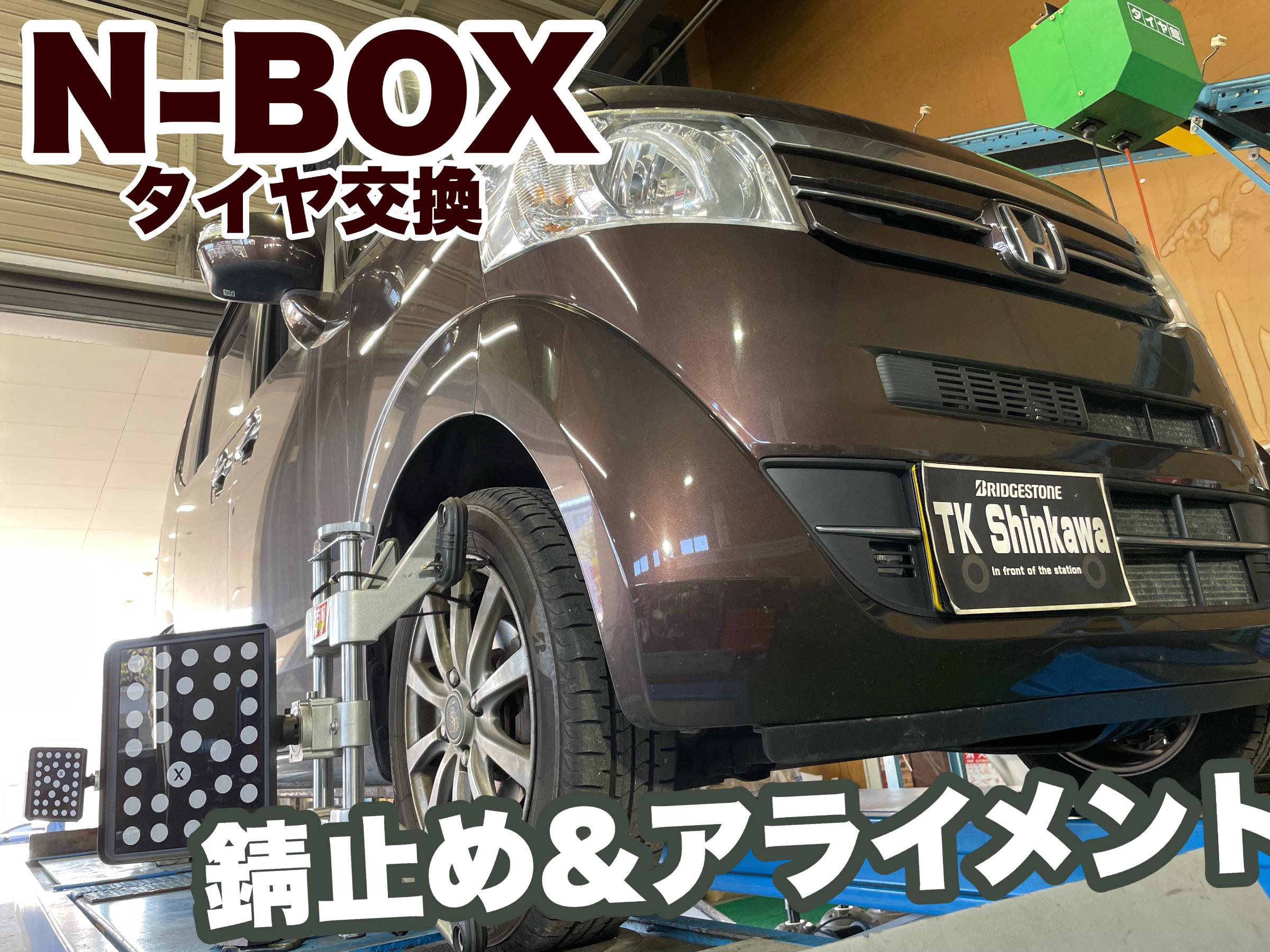 N-BOXはタイヤを新しくタイミングでアライメントを実施です!