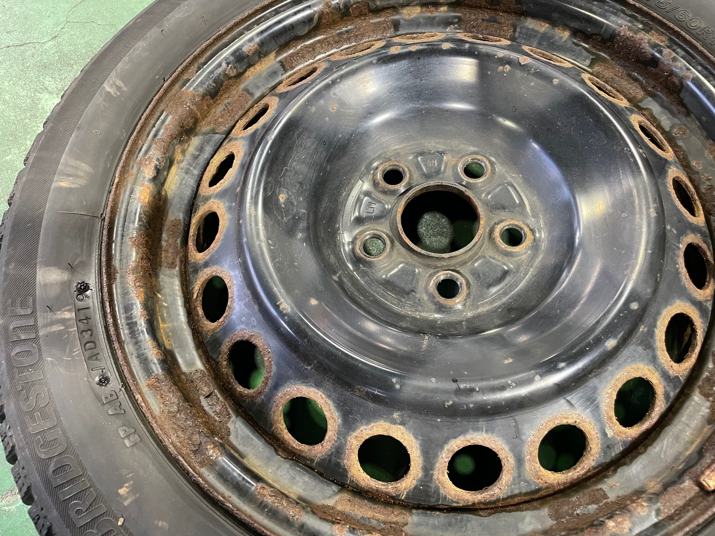 スチールホイールの錆がボコボコになってしまい
