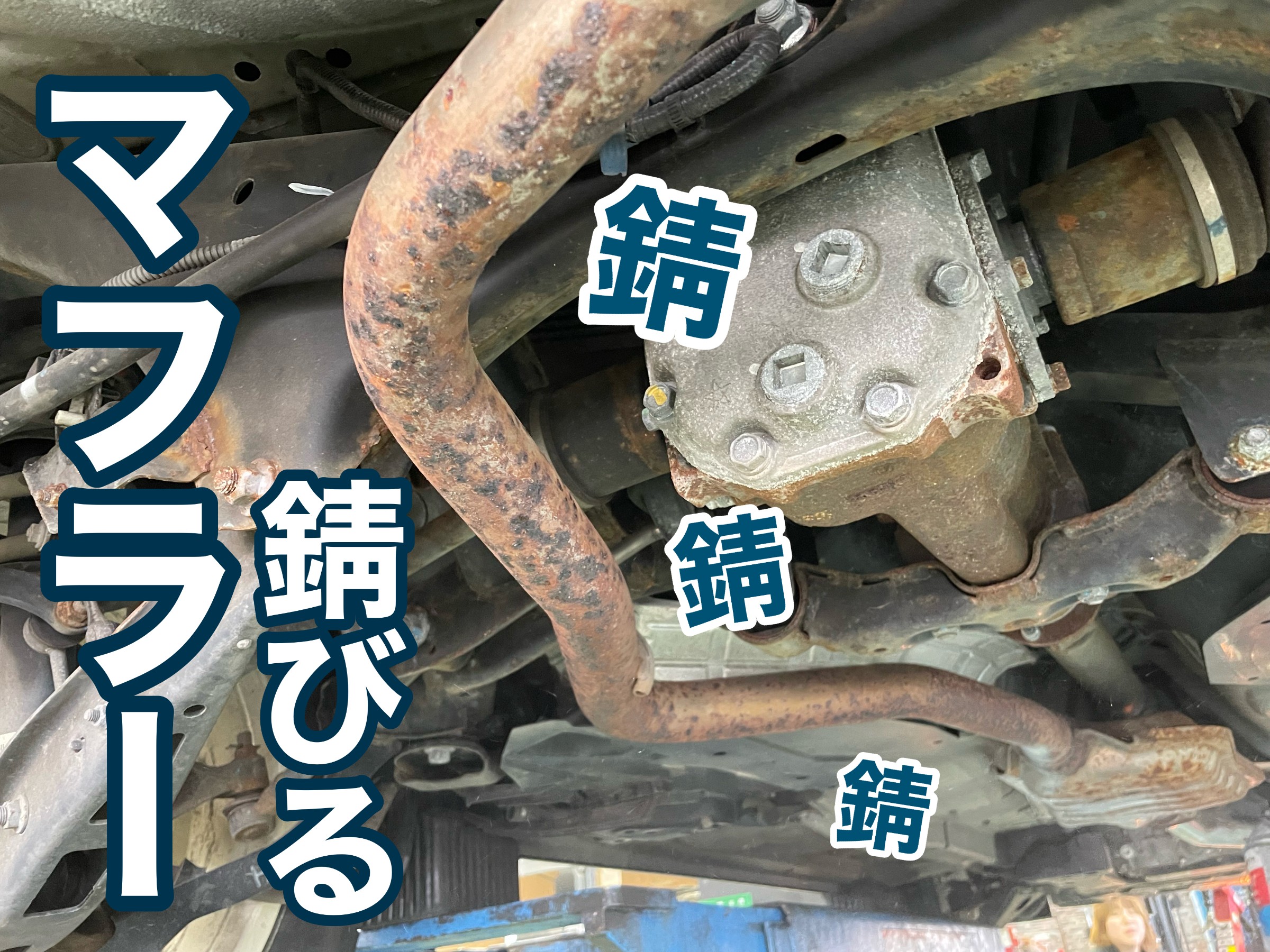 錆や劣化が進むと、排気漏れや、脱落に繋がります。