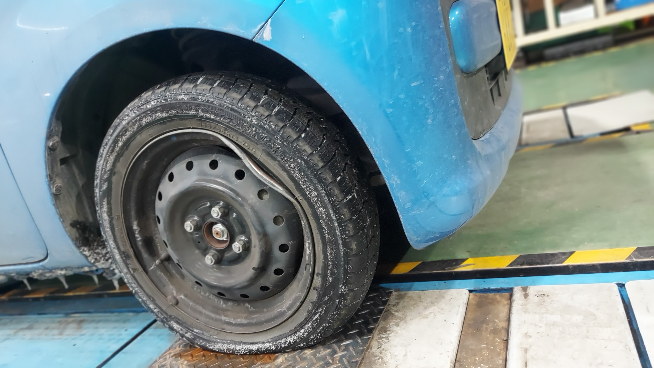 そしてバーストの反動でスチールホイールが変形・・・