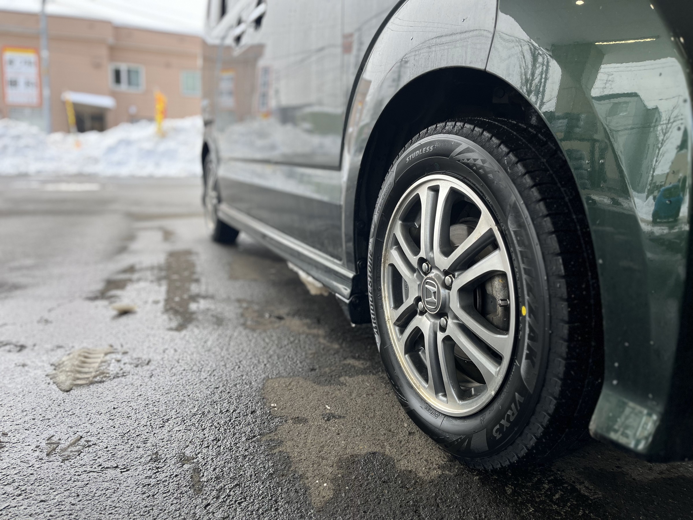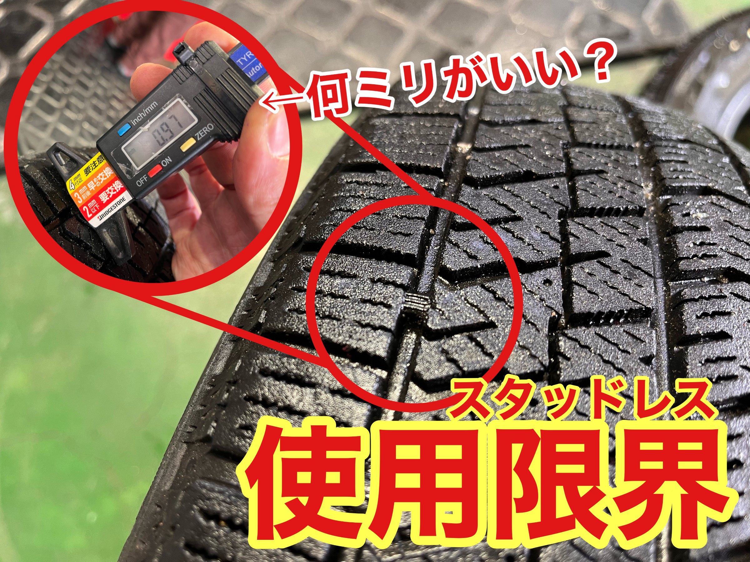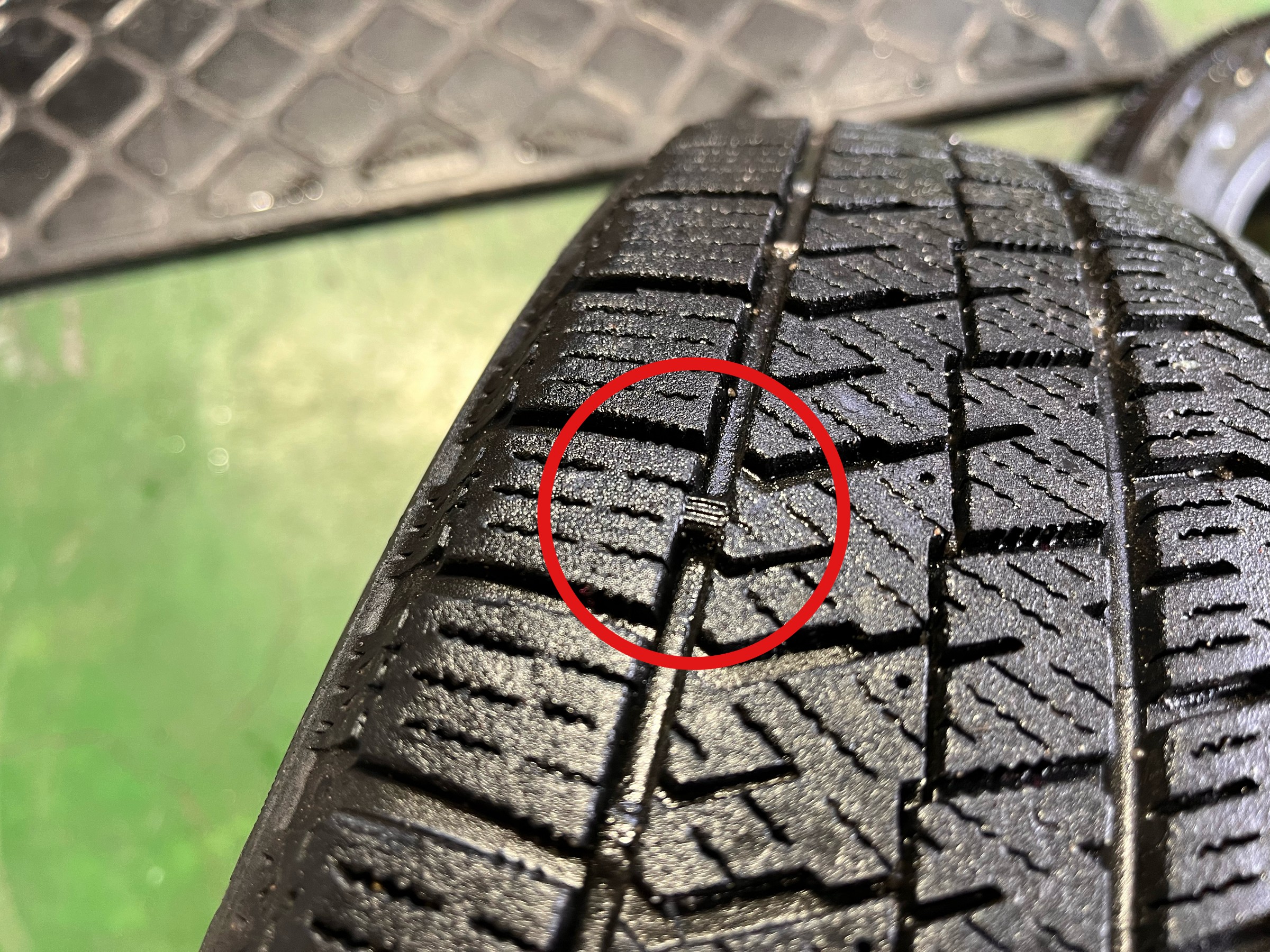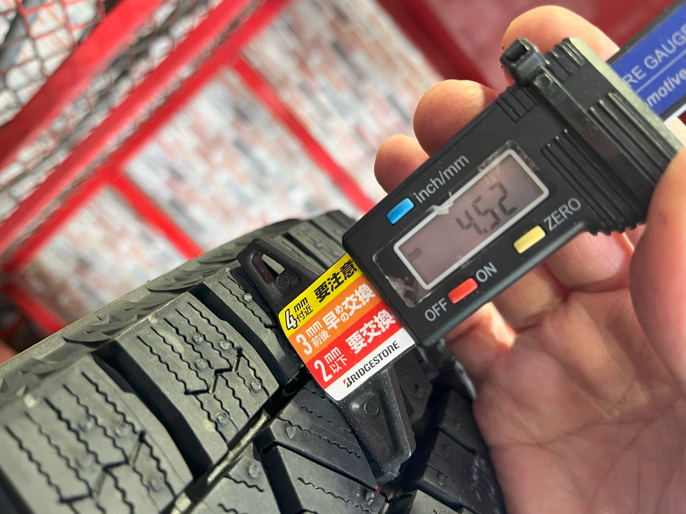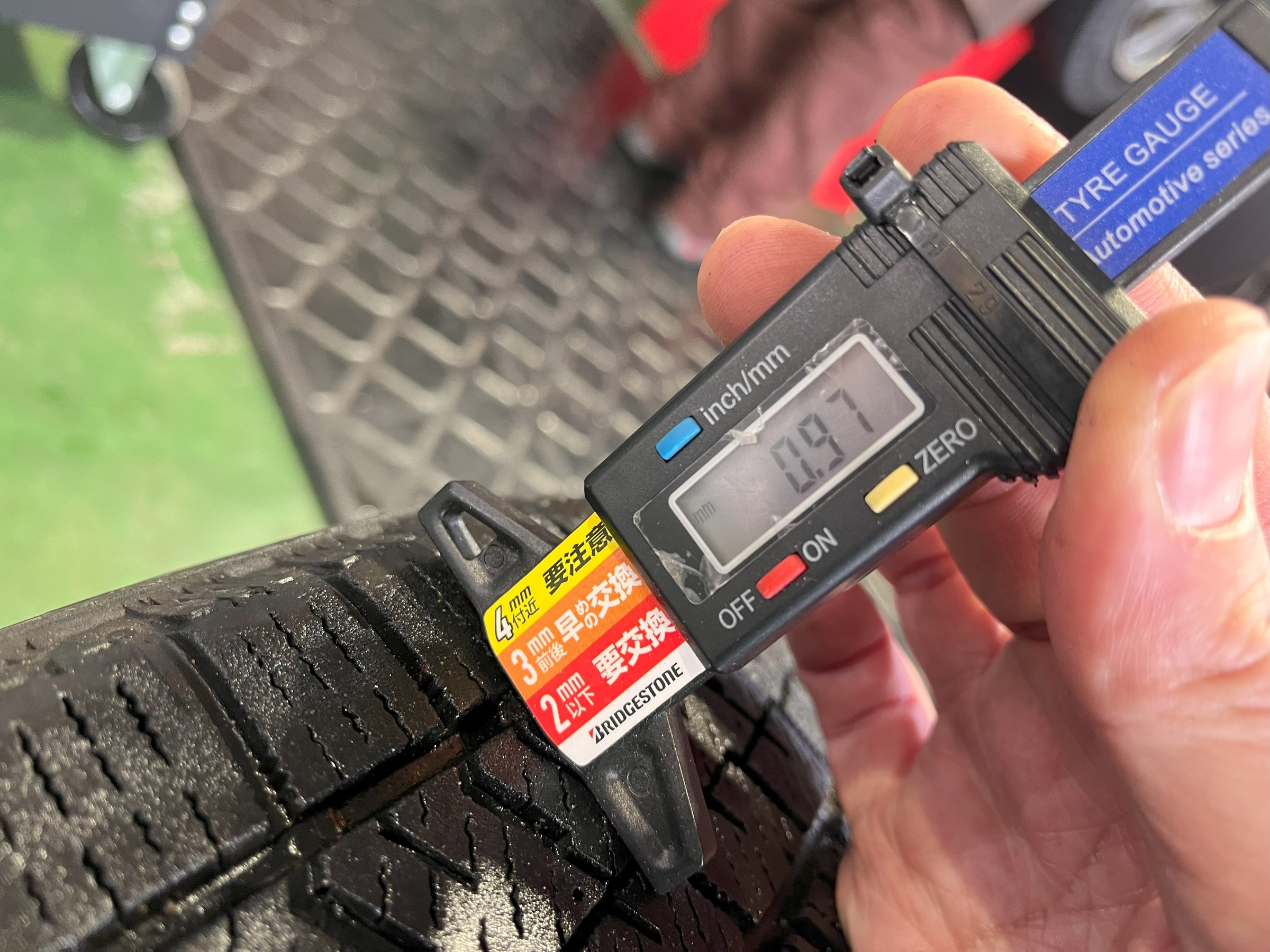 こちらのタイヤはスタッドレスの使用限界まで残り約1mm程度でした。