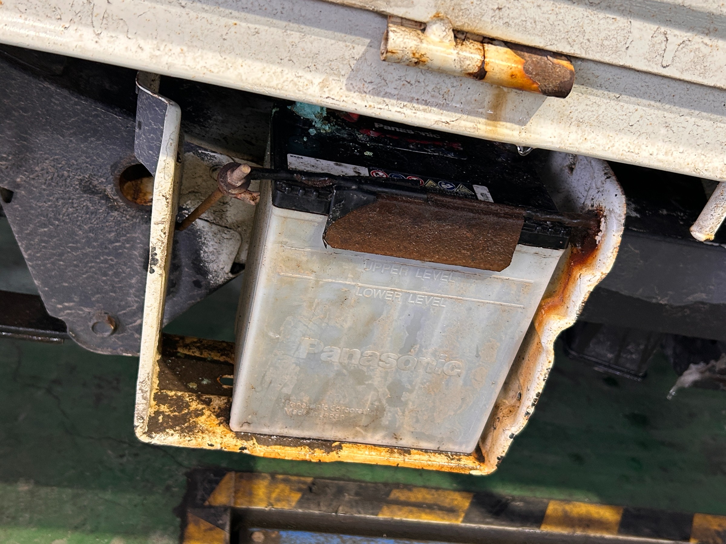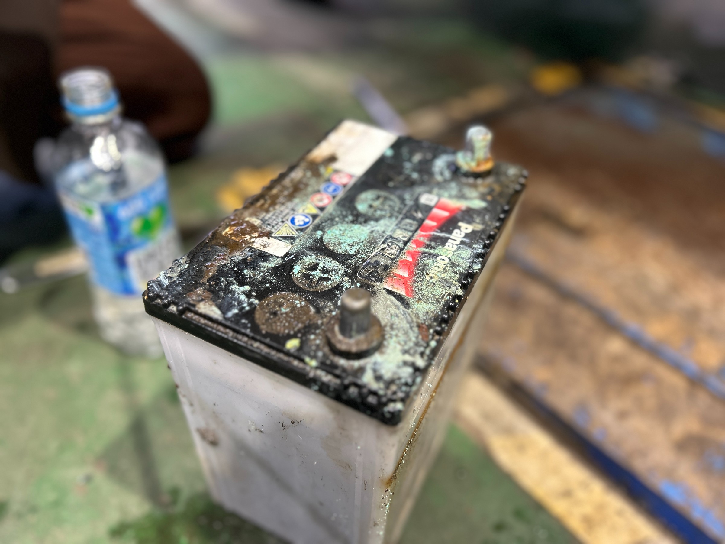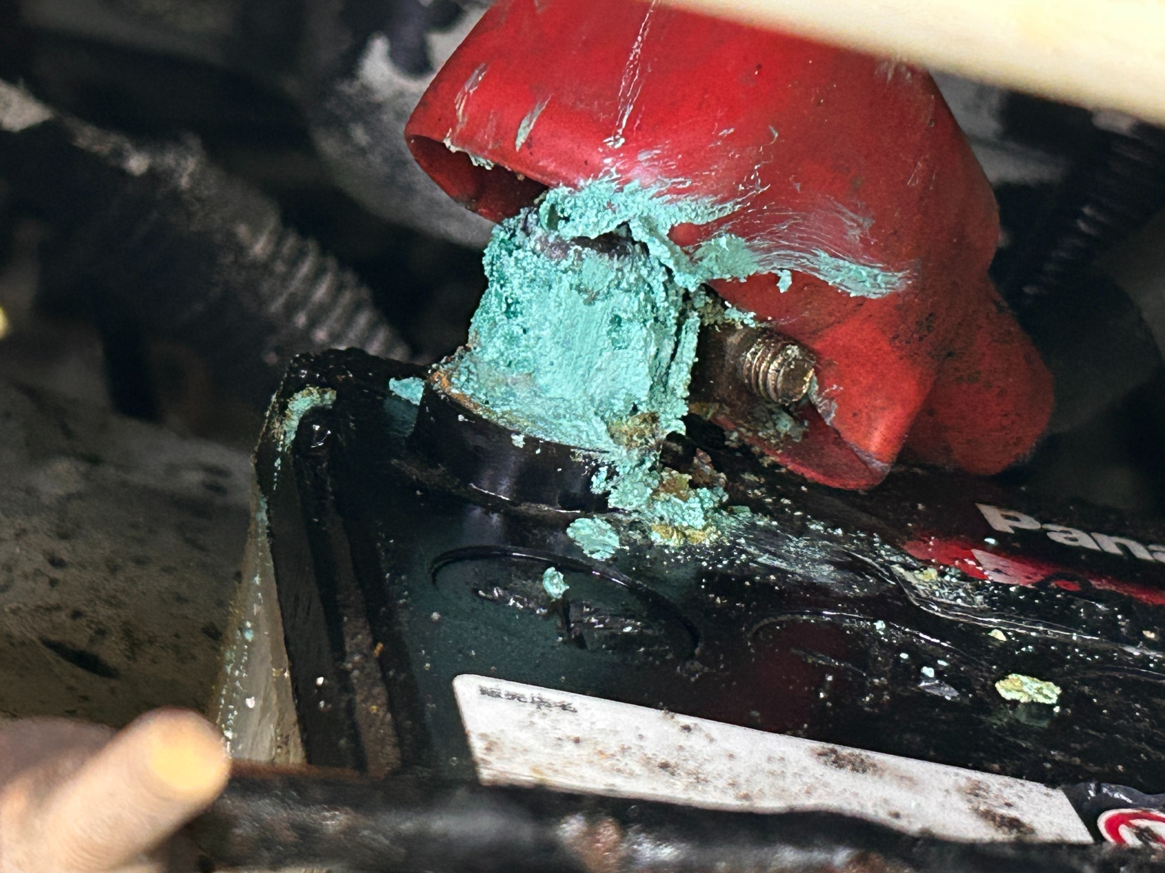 青い粉?のような物が、バッテリーの端子に付着していますね。