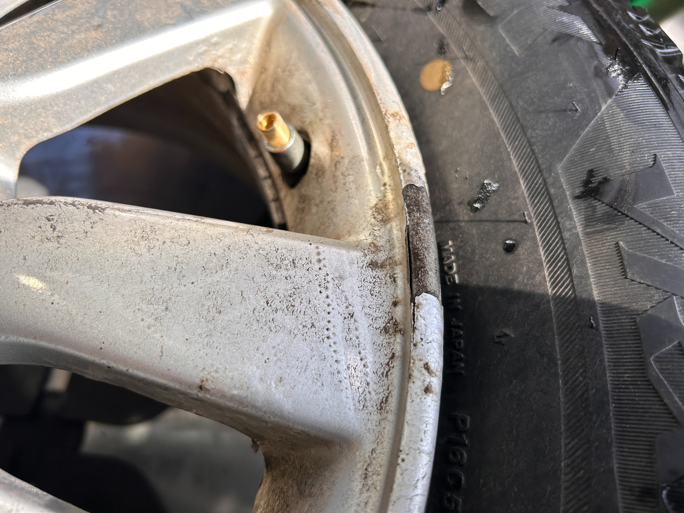 気づかないうちにエアーが少しづつもれて、タイヤが損傷してしまいました。