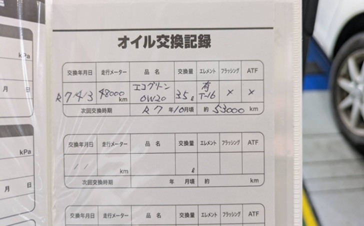 交換日、交換商品、油量、次回交換目安が記載されていますので、ぜひ次回ご来店にお役立てください!