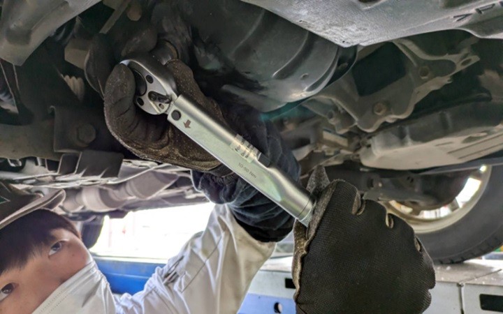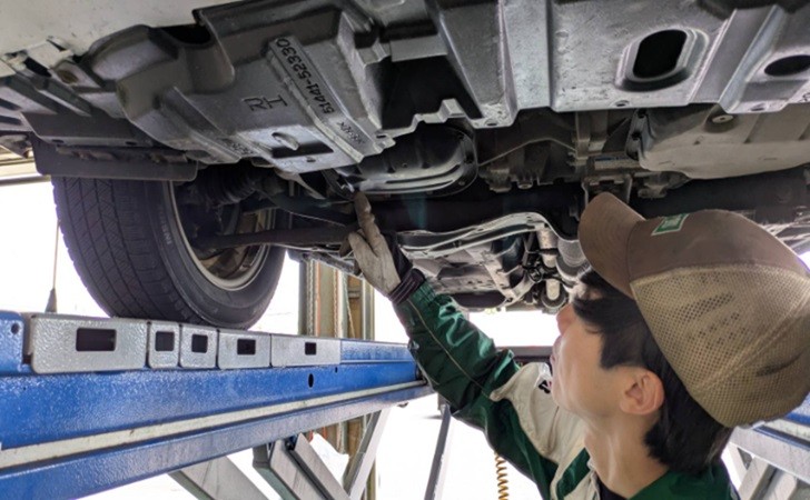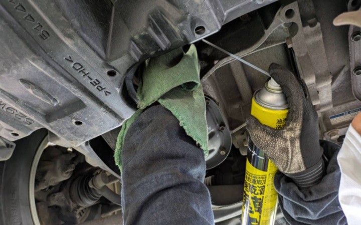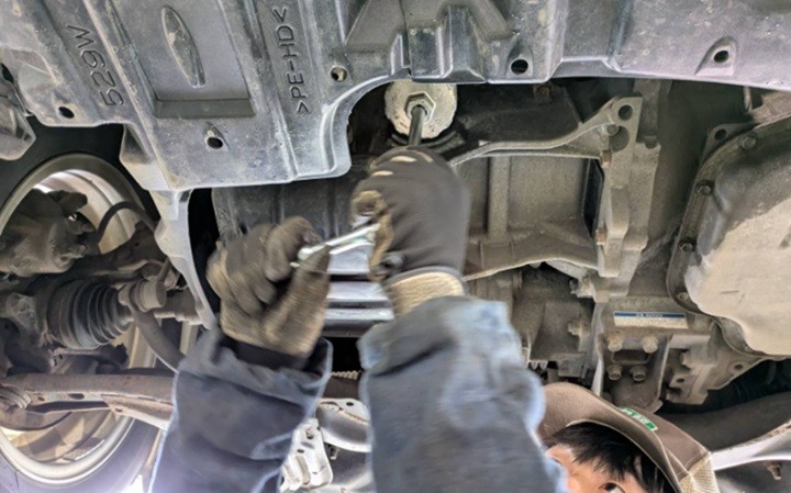 実際にお車の下から漏れのチェックを目視でさせていただいてから作業に入ります。