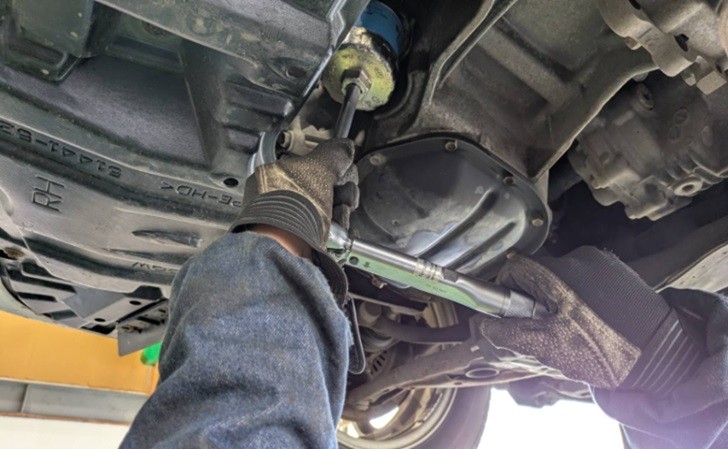 そしてオイルを抜いた際に、ドレン(栓)の清掃とトルクレンチを用いた締め付け、オイル漏れを防ぐパッキン(漏れ防止用部品)を新品交換をさせていただいております。